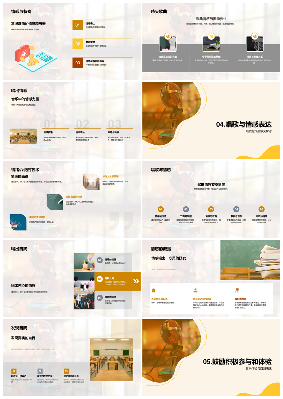 这是一张小学音乐课歌唱技巧呼吸发声情感节奏探索PPT模板,包含小学、音乐课、歌唱技巧、呼吸、发声、情感、节奏、探索等主题内容,也可用作小学音乐课歌唱技巧呼吸发声、音乐课歌唱技巧呼吸发声、歌唱技巧呼吸发声情感、呼吸发声情感节奏、小学音乐课歌唱技巧、音乐课歌唱技巧呼吸、歌唱技巧呼吸发声、呼吸发声情感节奏、发声情感节奏探索、小学音乐课情感节奏、歌唱技巧情感节奏、音乐课呼吸发声情感、歌唱发声情感节奏、呼吸情感节奏探索、小学音乐课节奏探索等PPT场景使用。 风云办公提供的小学音乐课歌唱技巧呼吸发声情感节奏探索PPT模板,下载格式为pptx,一共33页,作品中文字及图均可以修改和编辑,图片更改请在作品中右键图片并更换,文字修改请直接点击文字进行修改。