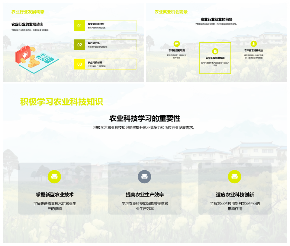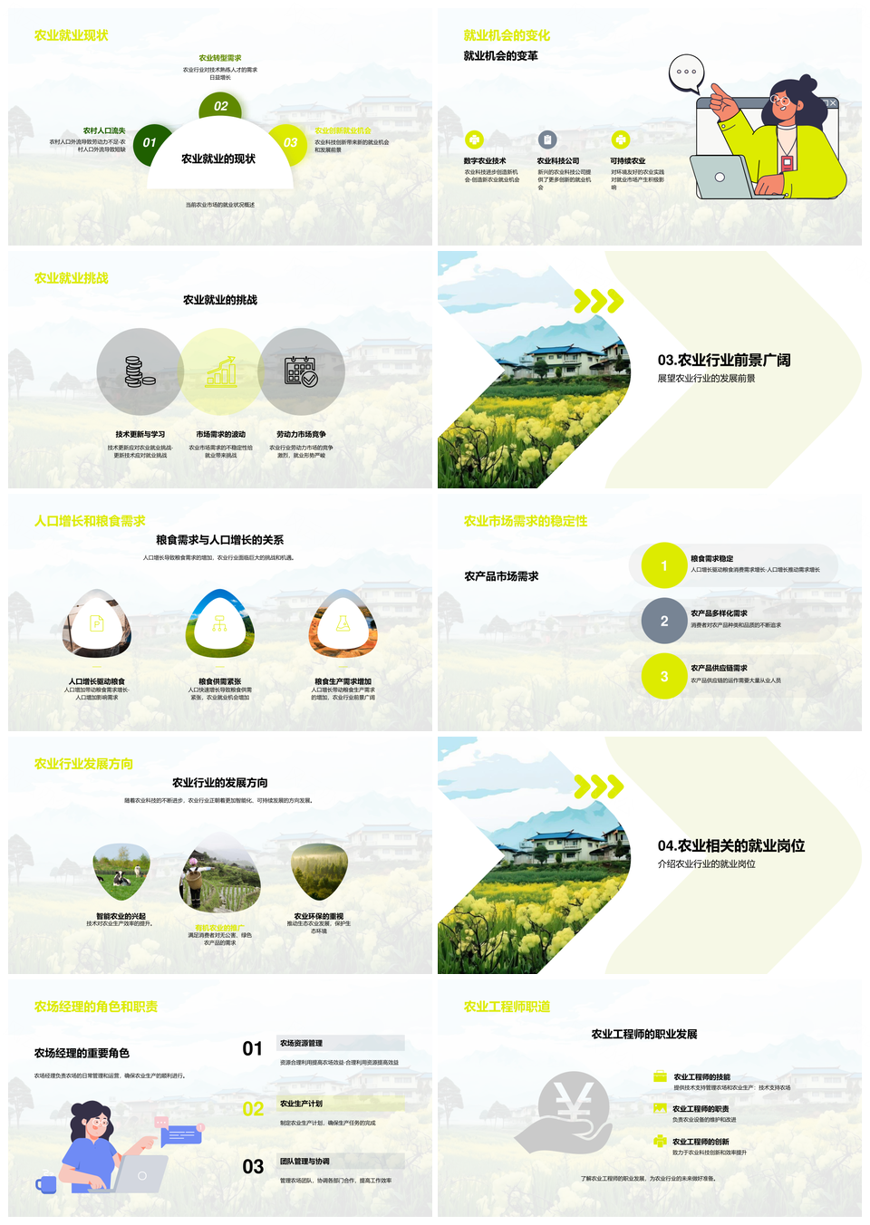 这是一张农业就业演变挑战与前景展望PPT模板,包含农业、就业、演变、挑战、前景、展望等主题内容,也可用作农业就业演变挑战、就业演变挑战前景、演变挑战前景展望、农业就业演变、就业演变挑战、演变挑战前景、挑战前景展望、农业演变挑战、农业就业前景、农业前景展望、就业前景展望、农业就业、就业演变、演变挑战、前景展望等PPT场景使用。