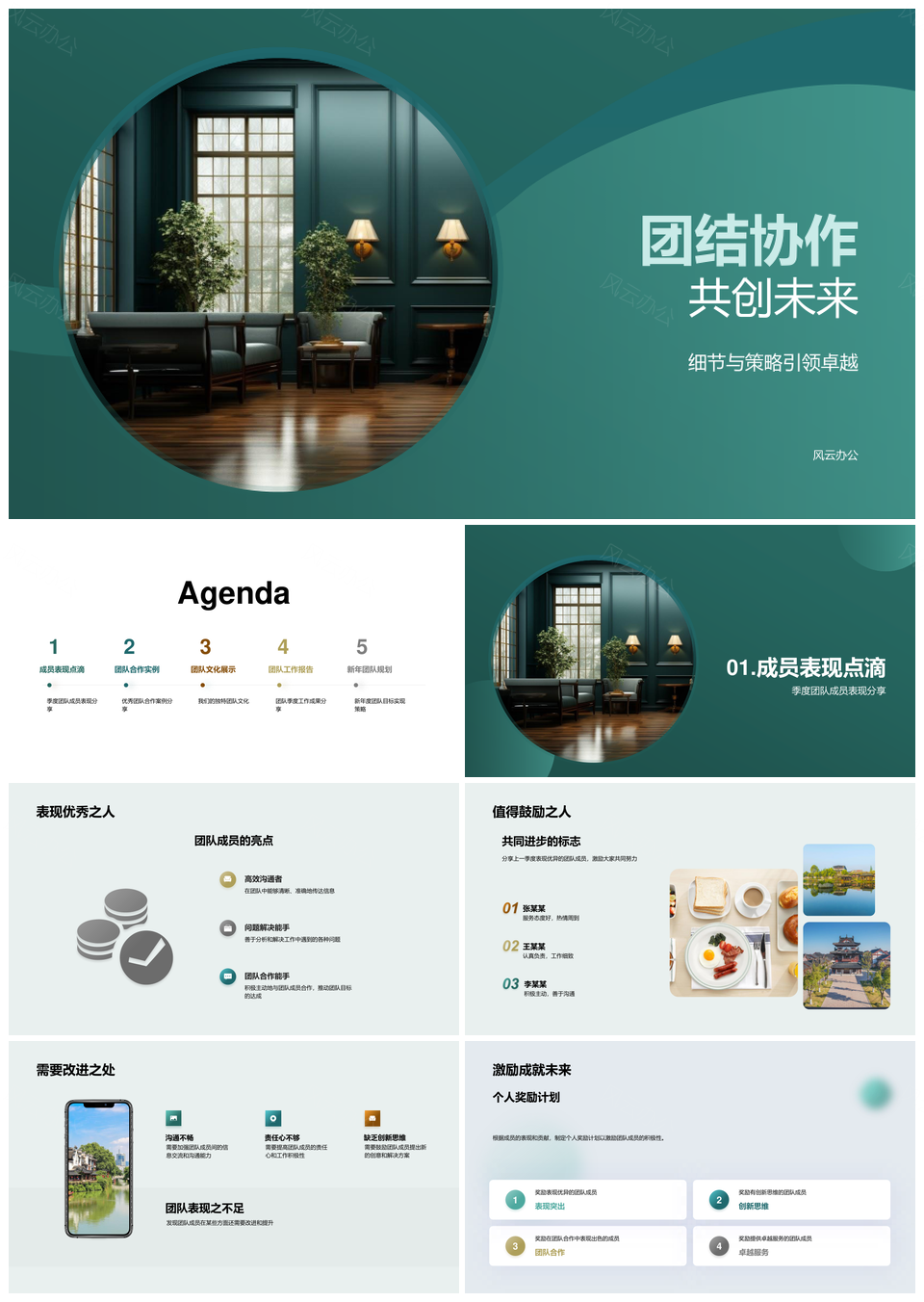 风云办公提供的餐饮团队团结协作策略精进创未来PPT模板,下载格式为pptx,一共33页,作品中文字及图均可以修改和编辑,图片更改请在作品中右键图片并更换,文字修改请直接点击文字进行修改。