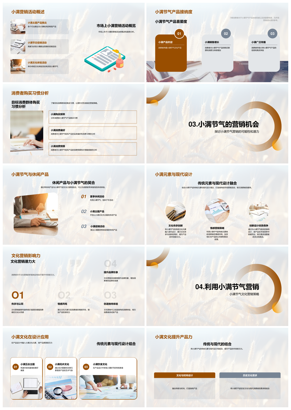 这是一张小满节气营销活动传统元素麦穗文化市场消费习惯PPT模板,包含小满节气、营销活动、传统元素、麦穗、文化、市场、消费习惯等主题内容,也可用作小满节气营销活动传统元素、传统元素麦穗文化市场消费、麦穗文化市场消费习惯、小满节气营销活动、传统元素麦穗文化、麦穗文化市场消费、市场消费习惯传统、小满节气传统元素、节气营销活动传统、营销活动传统元素、传统元素麦穗、麦穗文化市场、文化市场消费、市场消费习惯、消费习惯传统等PPT场景使用。 风云办公提供的小满节气营销活动传统元素麦穗文化市场消费习惯PPT模板,下载格式为pptx,一共23页,作品中文字及图均可以修改和编辑,图片更改请在作品中右键图片并更换,文字修改请直接点击文字进行修改。