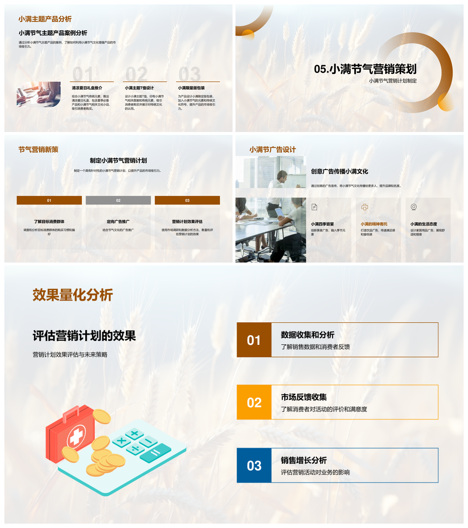 小满节气营销活动传统元素麦穗文化市场消费习惯PPT模板推荐
