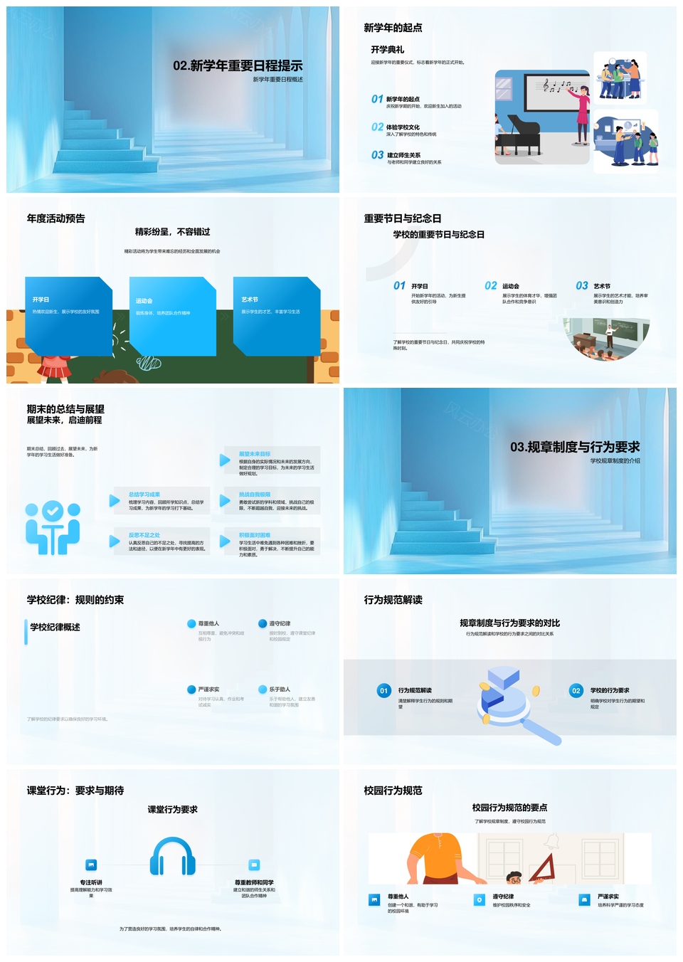 2025学校发展教育理念引领学生参与新活动守规章PPT模板推荐