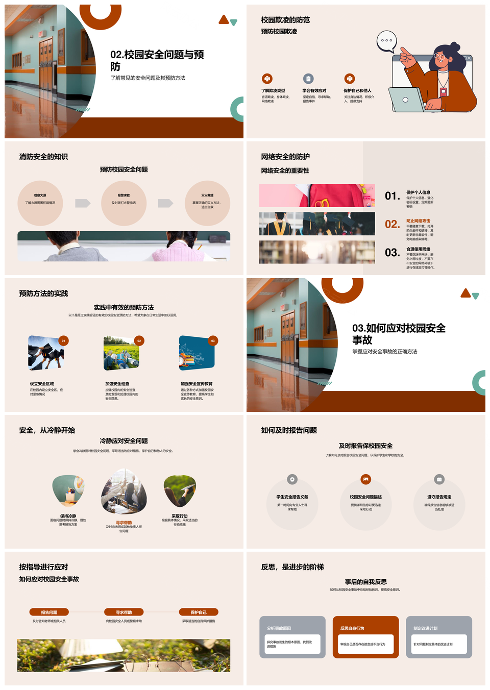 这是一张校园安全教育普及消防网络欺凌知识PPT模板,包含校园、安全教育、普及、消防、网络、欺凌、知识等主题内容,也可用作校园安全教育普及、安全教育普及消防、普及消防网络欺凌、消防网络欺凌知识、校园安全消防知识、教育普及网络欺凌、校园安全网络欺凌、安全教育消防知识、普及消防网络知识、教育网络欺凌知识、校园消防网络欺凌、安全消防知识教育、网络欺凌教育普及、校园欺凌知识普及、安全知识教育普及等PPT场景使用。