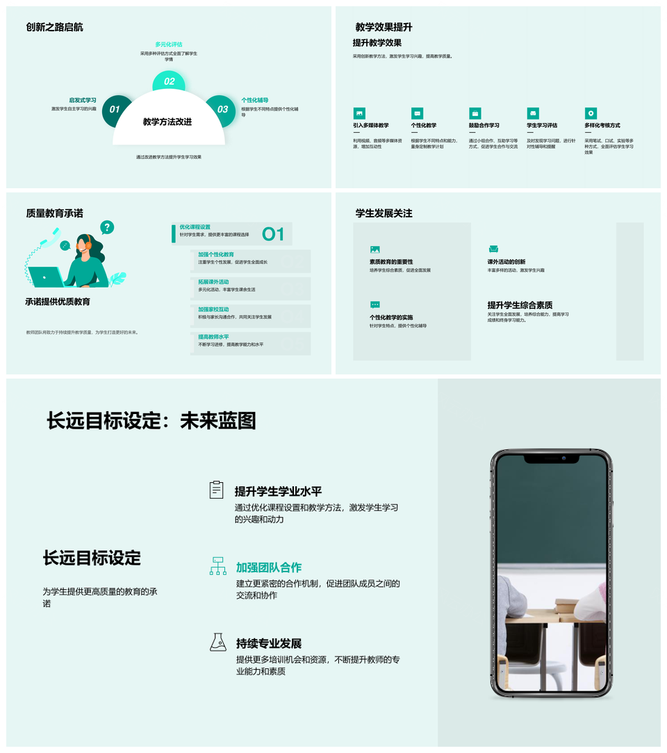 这是一张师资团队教研组长引领教学提升未来规划PPT模板,包含师资团队、教研组长、引领、教学、提升、未来规划等主题内容,也可用作师资团队教研组长引领教学提升、教研组长引领教学提升未来规划、师资团队教研组长引领、教研组长引领教学提升、引领教学提升未来规划、师资团队教研组长、教研组长引领、引领教学提升、教学提升未来规划、师资团队引领教学提升、教研组长教学提升未来规划、引领未来规划、师资团队教学提升、教学提升规划、引领提升未来等PPT场景使用。 风云办公提供的师资团队教研组长引领教学提升未来规划PPT模板,下载格式为pptx,一共33页,作品中文字及图均可以修改和编辑,图片更改请在作品中右键图片并更换,文字修改请直接点击文字进行修改。