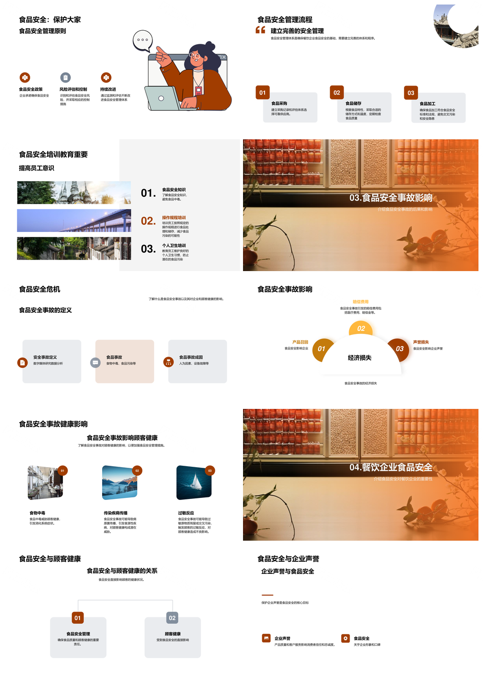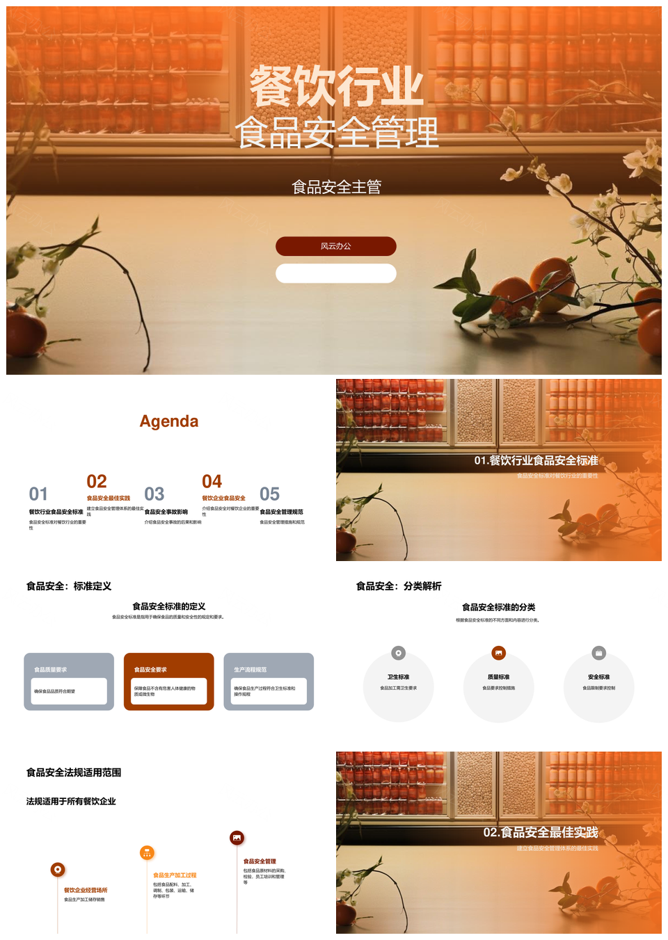这是一张餐饮食品安全管理体系法规标准培训流程PPT模板,包含餐饮、食品、安全、管理体系、法规、标准、培训、流程等主题内容,也可用作餐饮食品安全管理体系法规标准培训流程、餐饮食品安全管理体系法规标准、食品安全管理体系法规标准培训流程、管理体系法规标准培训流程、餐饮食品安全管理体系、食品安全管理体系法规标准、管理体系法规标准培训、法规标准培训流程、餐饮食品安全、食品安全管理体系、管理体系法规标准、法规标准培训、培训流程、餐饮食品、安全管理体系等PPT场景使用。 风云办公提供的餐饮食品安全管理体系法规标准培训流程PPT模板,下载格式为pptx,一共23页,作品中文字及图均可以修改和编辑,图片更改请在作品中右键图片并更换,文字修改请直接点击文字进行修改。