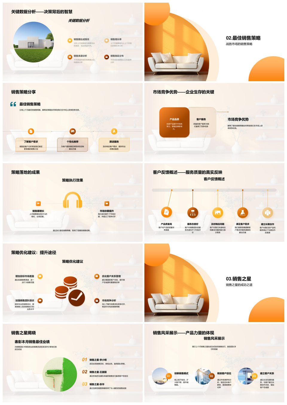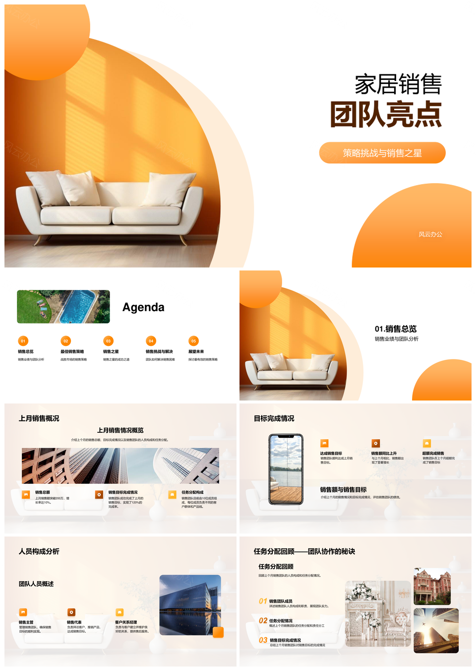 风云办公提供的家居销售团队之星策略目标优势业绩PPT模板,下载格式为pptx,一共33页,作品中文字及图均可以修改和编辑,图片更改请在作品中右键图片并更换,文字修改请直接点击文字进行修改。