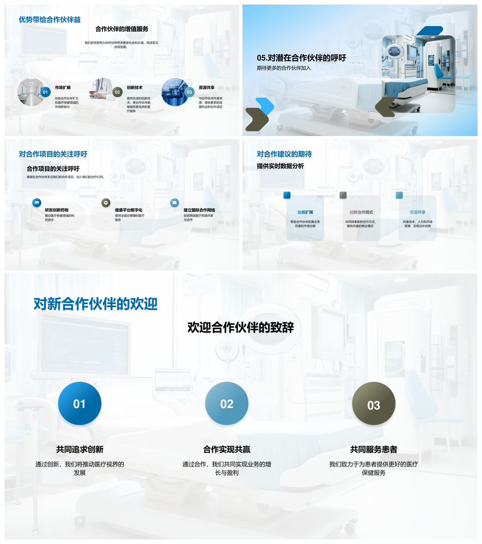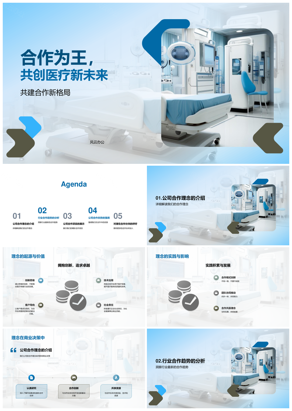 风云办公提供的合作为王生物医疗保健设备新格局PPT模板,下载格式为pptx,一共23页,作品中文字及图均可以修改和编辑,图片更改请在作品中右键图片并更换,文字修改请直接点击文字进行修改。