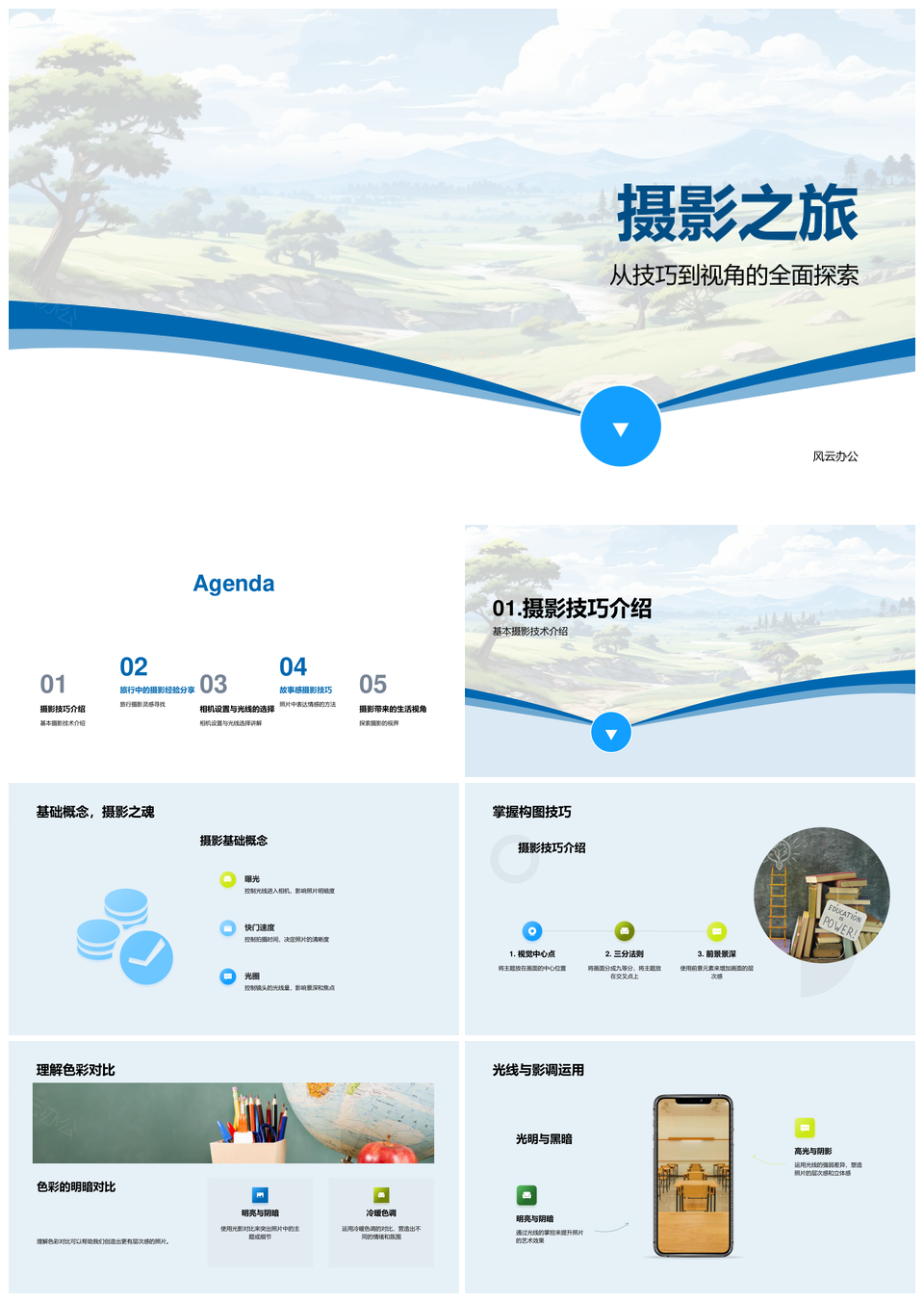 2025旅行摄影构图色彩光影艺术技巧相机实践PPT模板
