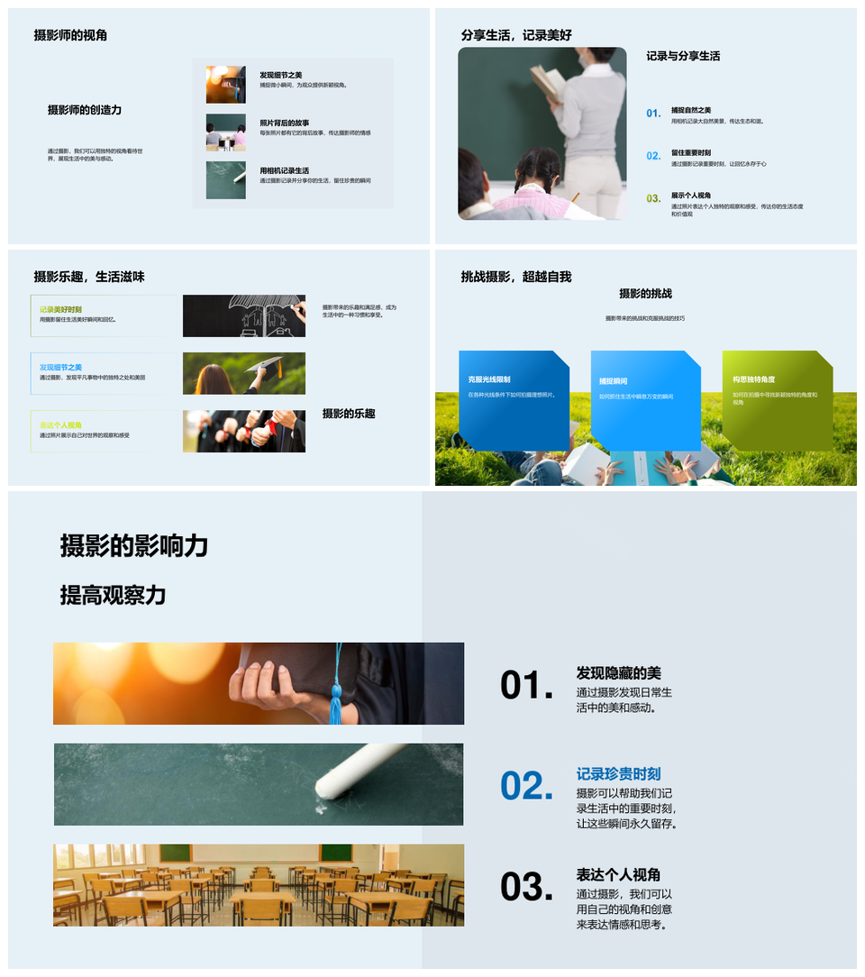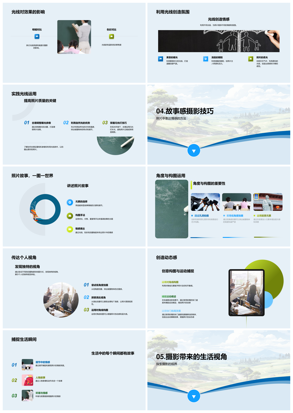 摄影俱乐部旅行技巧构图色彩对比相册图集PPT模板推荐