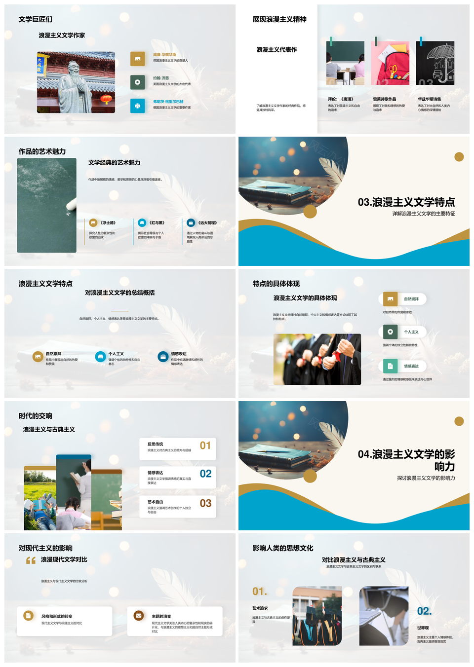 浪漫主义文学运动起源历史背景代表作家作品PPT模板推荐
