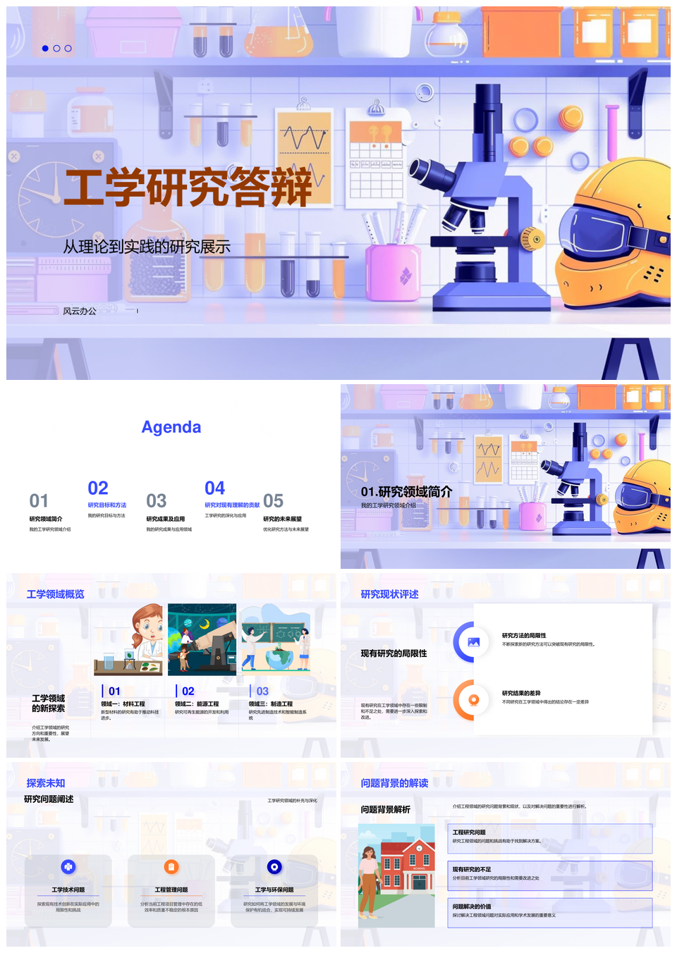 风云办公提供的工学研究答辩理论实践应用与问题解决PPT模板,下载格式为pptx,一共29页,作品中文字及图均可以修改和编辑,图片更改请在作品中右键图片并更换,文字修改请直接点击文字进行修改。