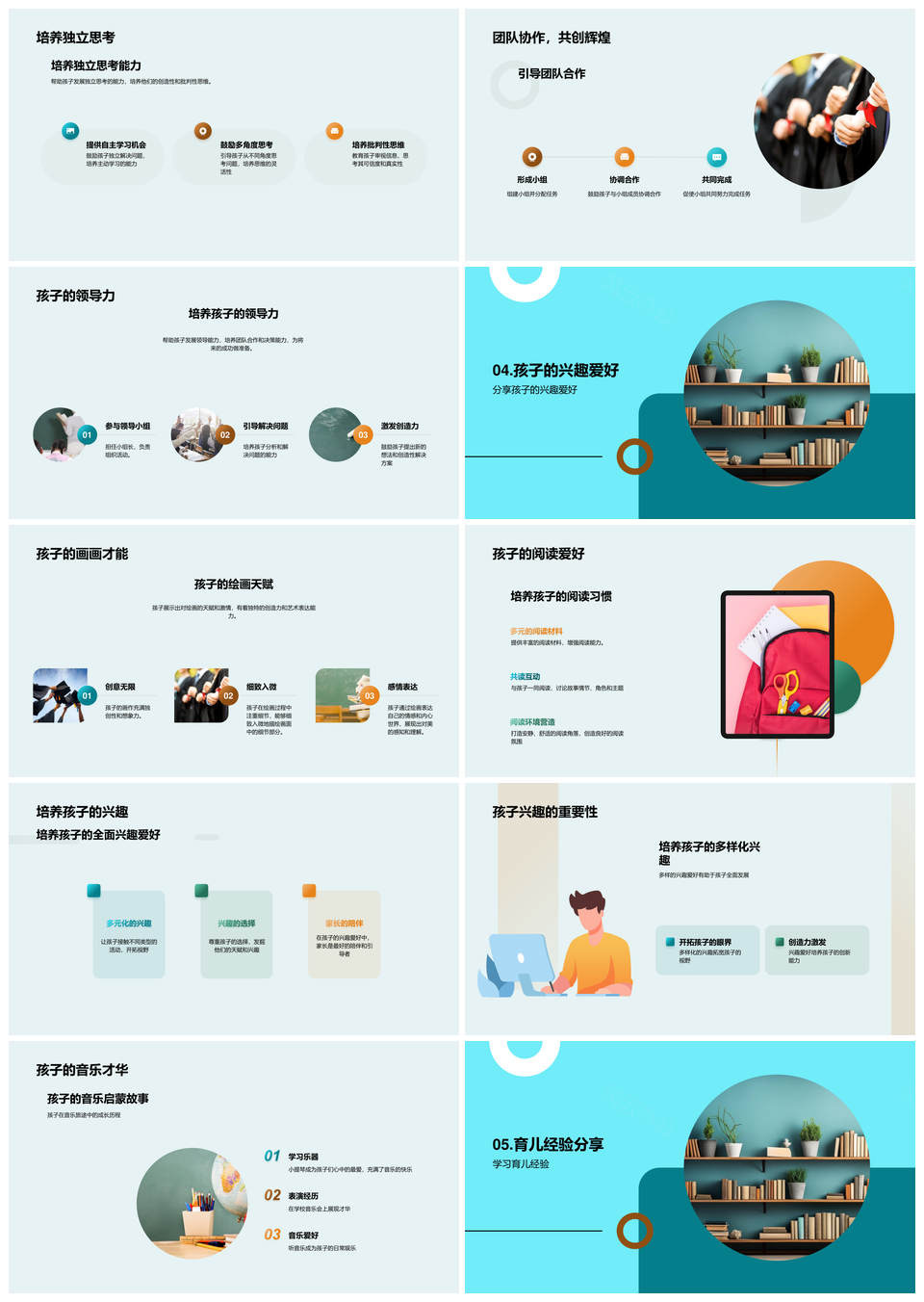 风云办公提供的育儿经验见证孩子学趣个性成长轨迹PPT模板,下载格式为pptx,一共33页,作品中文字及图均可以修改和编辑,图片更改请在作品中右键图片并更换,文字修改请直接点击文字进行修改。