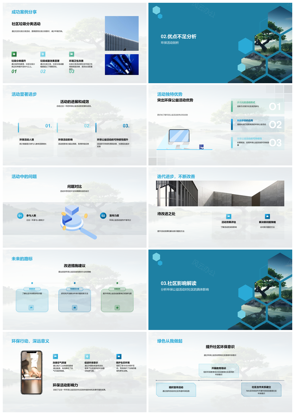 风云办公提供的社区环保活动成效与政策展望PPT模板,下载格式为pptx,一共33页,作品中文字及图均可以修改和编辑,图片更改请在作品中右键图片并更换,文字修改请直接点击文字进行修改。