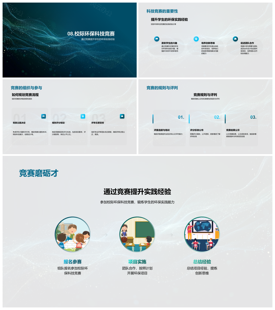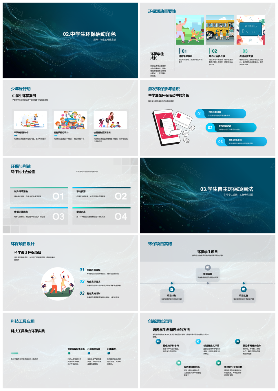 风云办公提供的中学生环保科技创新校际竞赛PPT模板,下载格式为pptx,一共43页,作品中文字及图均可以修改和编辑,图片更改请在作品中右键图片并更换,文字修改请直接点击文字进行修改。