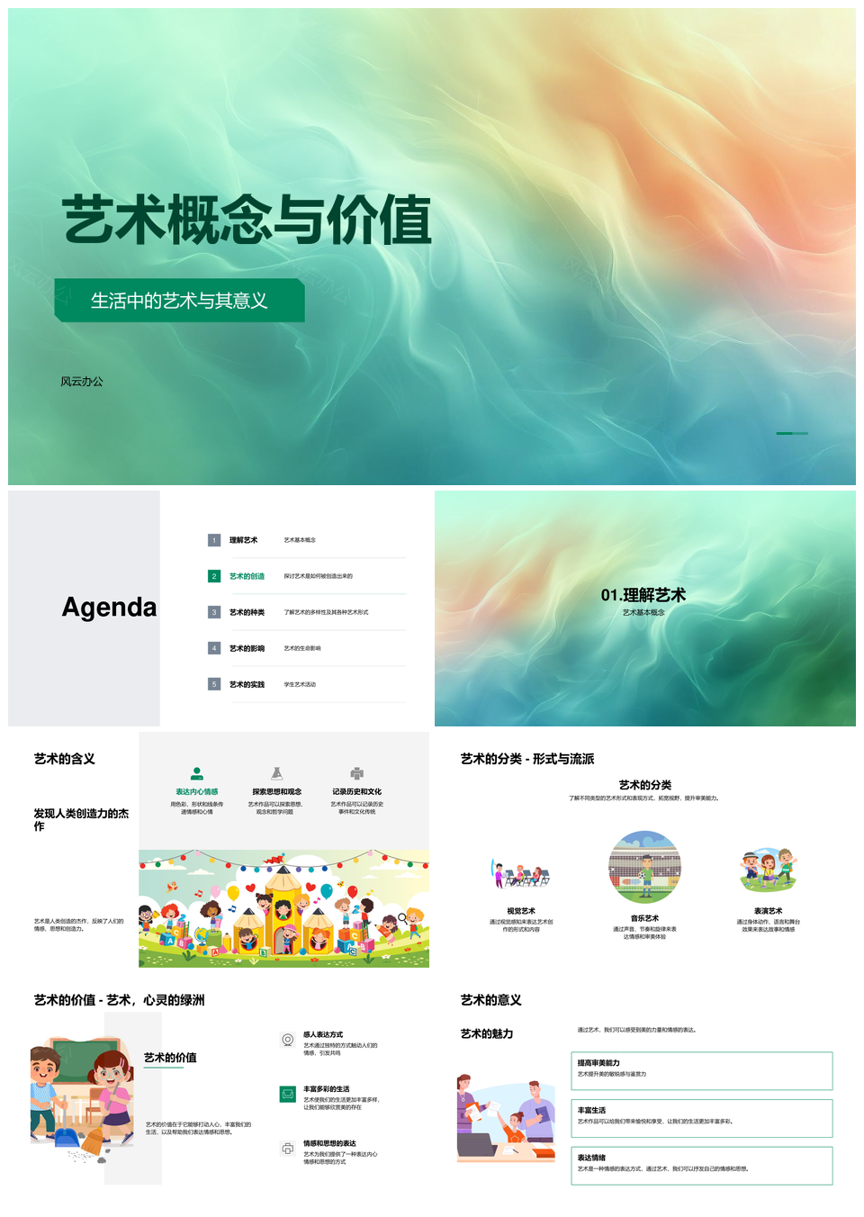 风云办公提供的艺术概念价值分类与多元形式意义PPT模板,下载格式为pptx,一共33页,作品中文字及图均可以修改和编辑,图片更改请在作品中右键图片并更换,文字修改请直接点击文字进行修改。