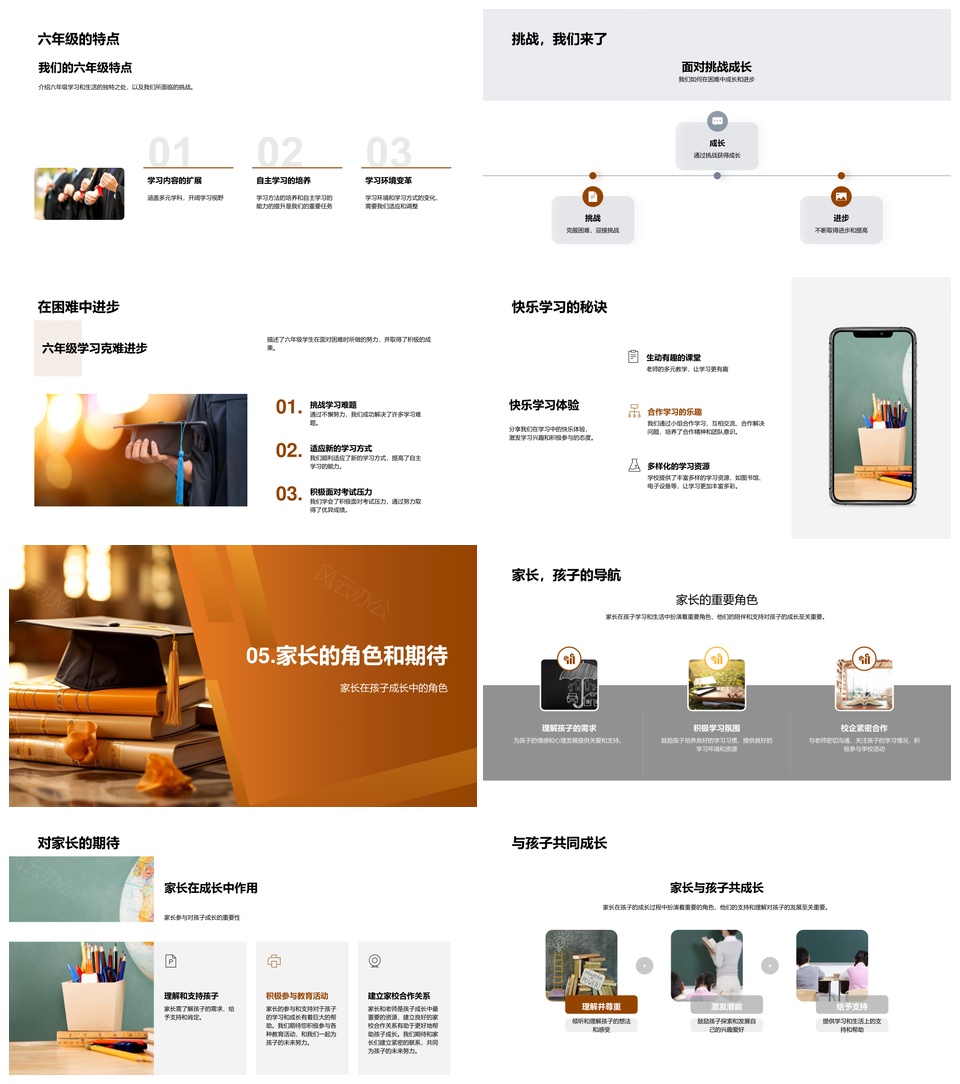 风云办公提供的六年级学习成长奋进同伴共进PPT模板,下载格式为pptx,一共26页,作品中文字及图均可以修改和编辑,图片更改请在作品中右键图片并更换,文字修改请直接点击文字进行修改。