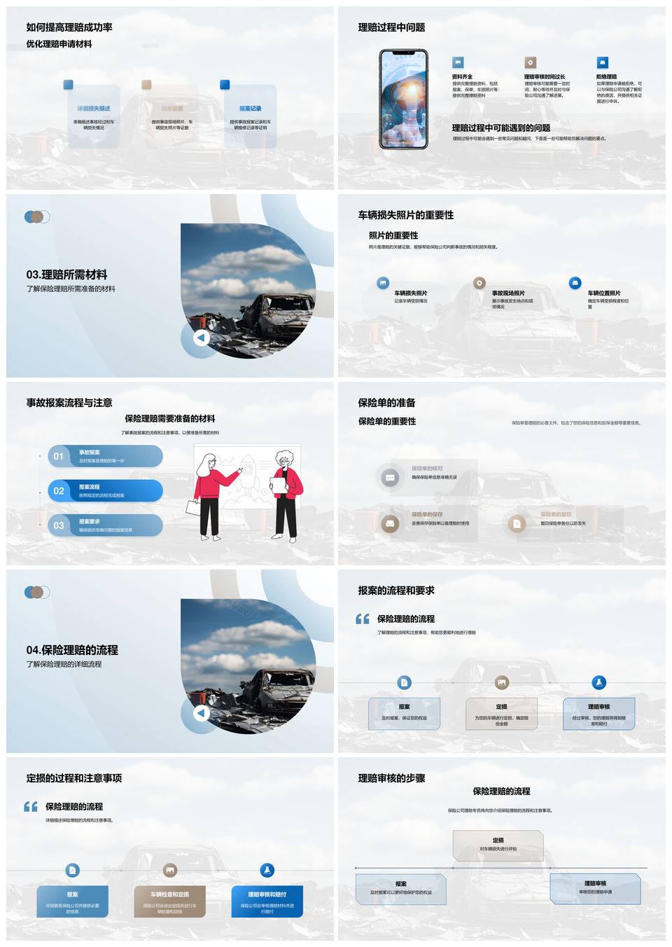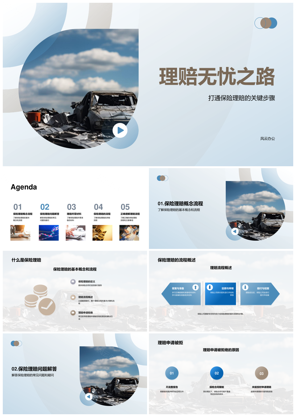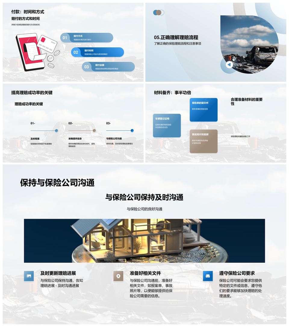 风云办公提供的保险理赔流程保险公司客户专员指南PPT模板,下载格式为pptx,一共23页,作品中文字及图均可以修改和编辑,图片更改请在作品中右键图片并更换,文字修改请直接点击文字进行修改。