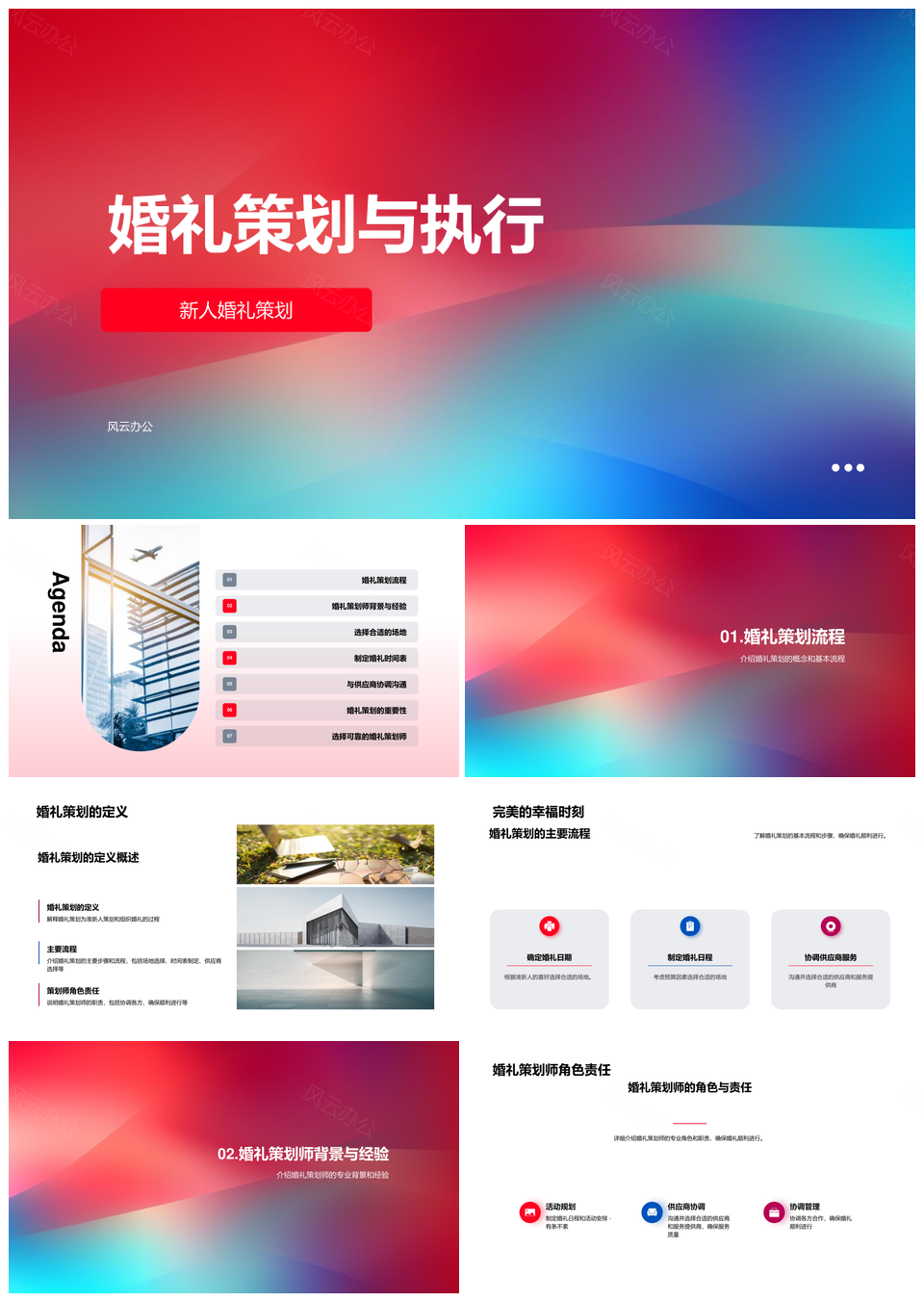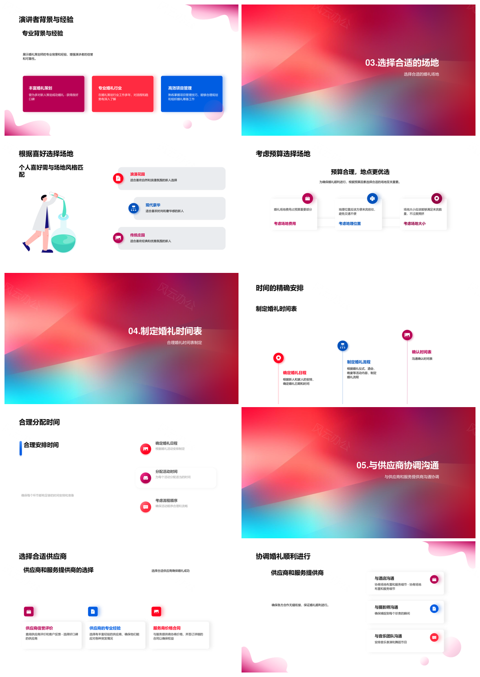 婚礼策划师新人主题色彩渐变抽象场景风格PPT模板