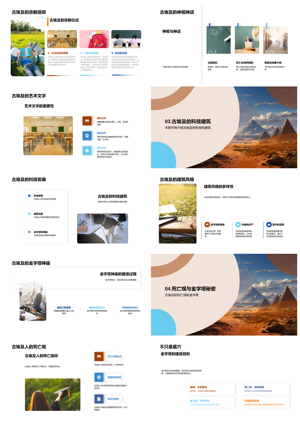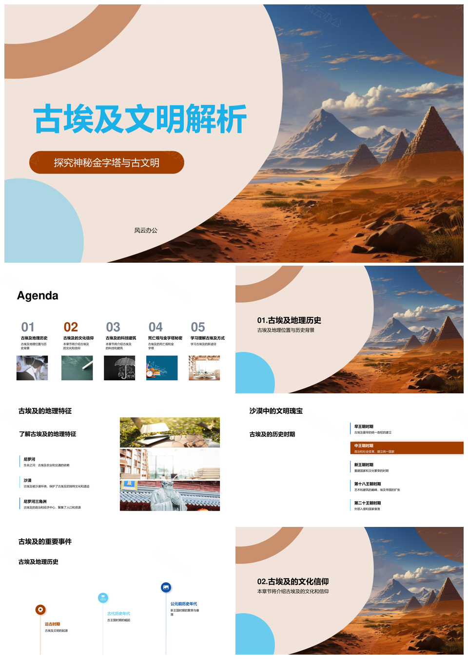 这是一张古埃及文明金字塔历史文化地理科技解析PPT模板,包含古埃及、文明、金字塔、历史、文化、地理、科技、解析等主题内容,也可用作古埃及文明金字塔历史、古埃及文明历史文化、古埃及文明地理科技、古埃及文明科技解析、古埃及金字塔历史地理、金字塔历史文化地理、金字塔历史地理科技、历史文化地理科技、历史地理科技解析、古埃及文明金字塔、古埃及历史文化、古埃及地理科技、历史文化地理、地理科技解析、科技解析历史等PPT场景使用。 风云办公提供的古埃及文明金字塔历史文化地理科技解析PPT模板,下载格式为pptx,一共23页,作品中文字及图均可以修改和编辑,图片更改请在作品中右键图片并更换,文字修改请直接点击文字进行修改。