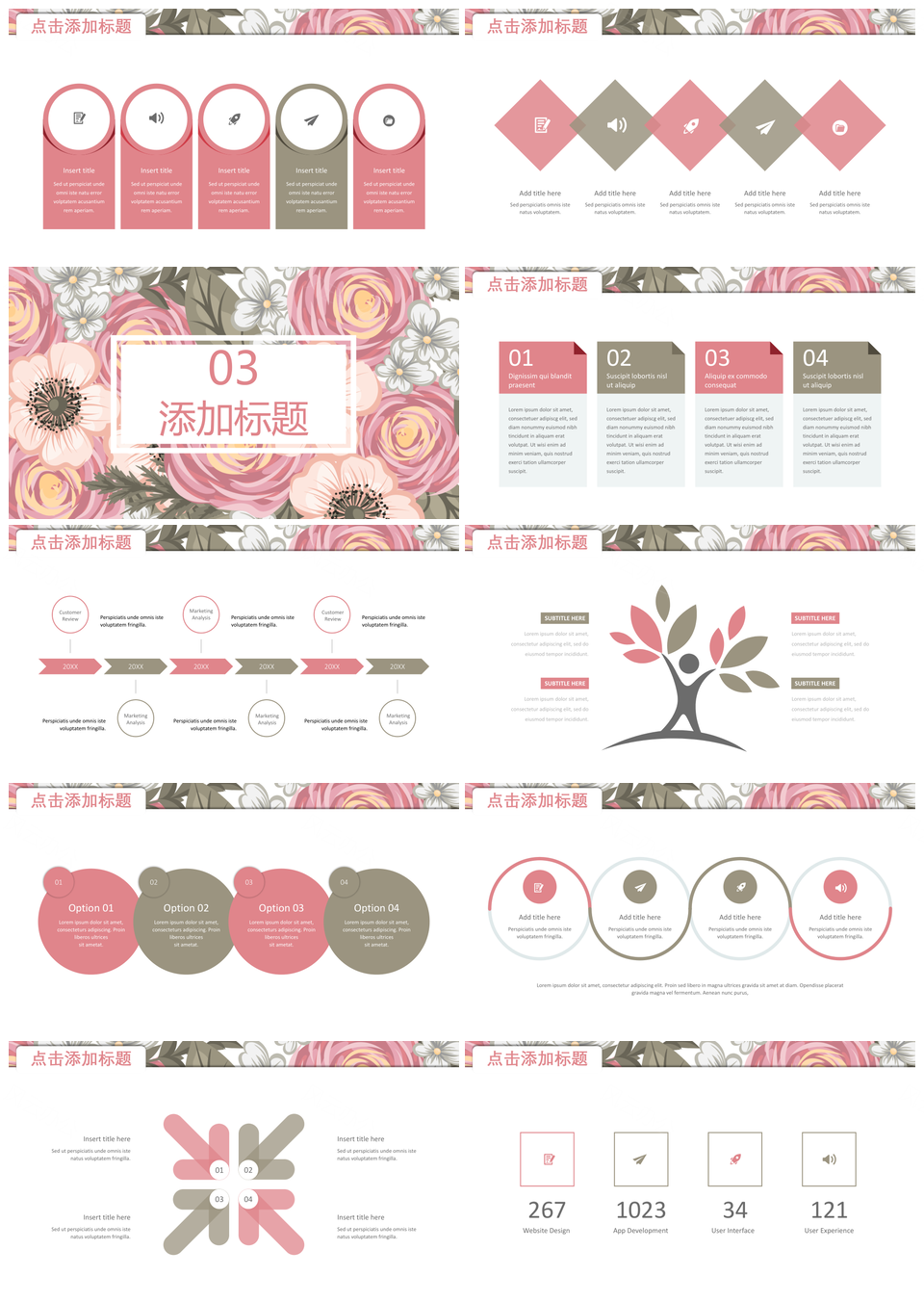 风云办公提供的粉色绿色文艺花朵小清新PPT模板,下载格式为pptx,一共34页,作品中文字及图均可以修改和编辑,图片更改请在作品中右键图片并更换,文字修改请直接点击文字进行修改。
