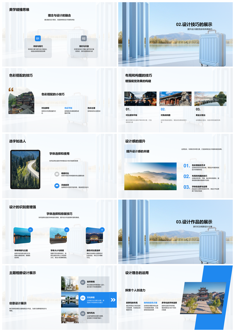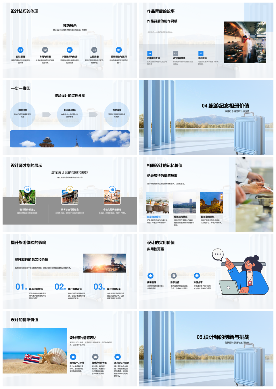 风云办公提供的旅记创新设计情感相册旅行箱色彩技巧PPT模板,下载格式为pptx,一共33页,作品中文字及图均可以修改和编辑,图片更改请在作品中右键图片并更换,文字修改请直接点击文字进行修改。