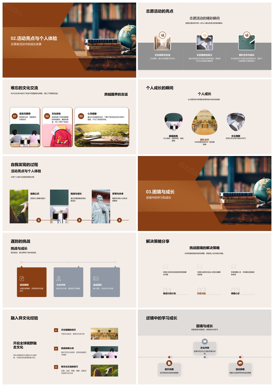 风云办公提供的志愿者之路跨文化协作成长挑战PPT模板,下载格式为pptx,一共26页,作品中文字及图均可以修改和编辑,图片更改请在作品中右键图片并更换,文字修改请直接点击文字进行修改。