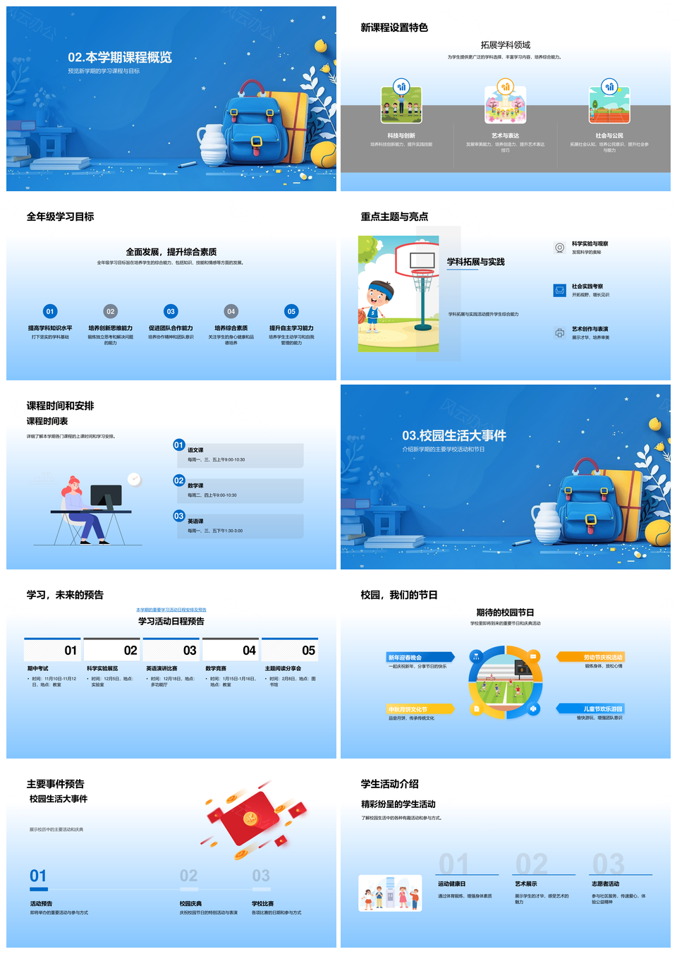 学期学习计划特色课程成就目标日程亮点PPT模板