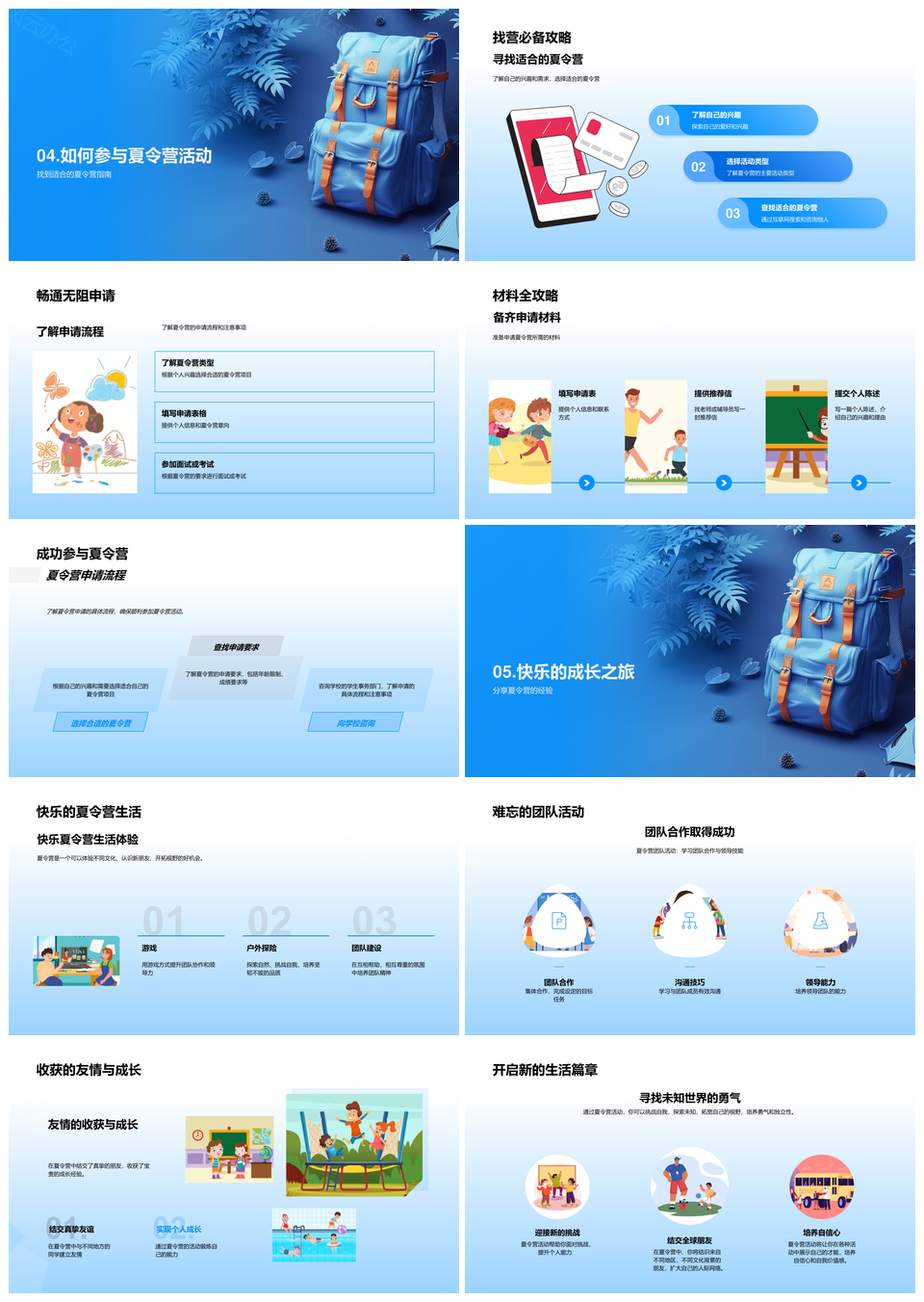 2025夏令营团队协作独立生活快乐成长申请指南PPT模板推荐