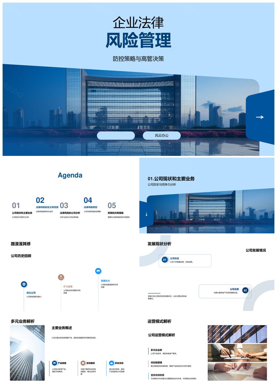 风云办公提供的企业法律风险防控策略与高管法务决策PPT模板,下载格式为pptx,一共33页,作品中文字及图均可以修改和编辑,图片更改请在作品中右键图片并更换,文字修改请直接点击文字进行修改。