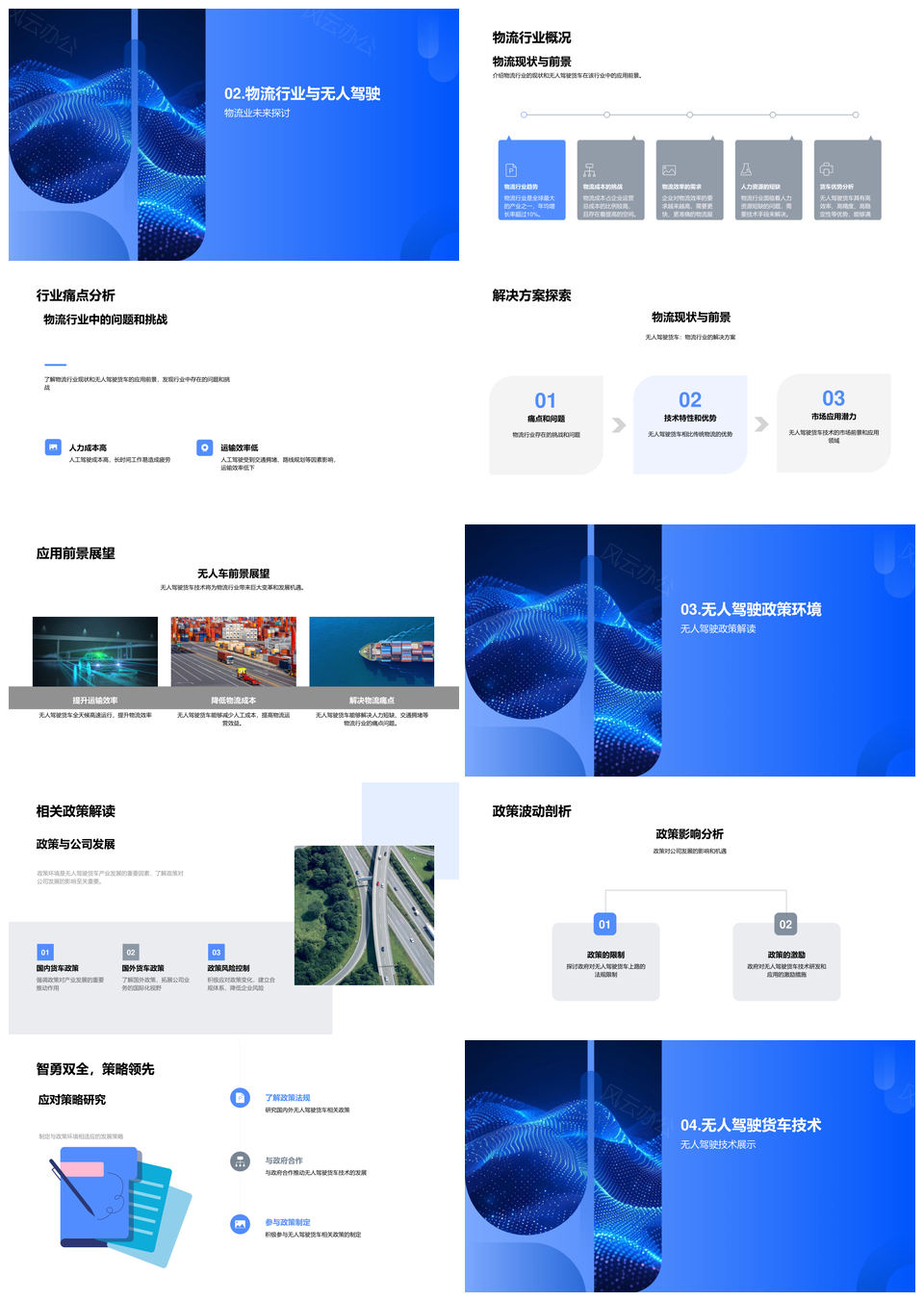 这是一张无人驾驶货车革新物流降本增效环保发展PPT模板,包含无人驾驶货车、革新、物流、降本、增效、环保、发展等主题内容,也可用作无人驾驶货车革新物流降本增效、无人驾驶货车物流降本增效环保发展、货车革新物流降本增效环保发展、革新物流降本增效环保发展、无人驾驶货车革新物流降本、货车革新物流降本增效、物流降本增效环保发展、无人驾驶货车降本增效环保、无人驾驶货车环保发展降本、革新降本增效环保发展、无人驾驶货车革新环保、物流降本增效环保、货车革新降本增效、革新物流环保发展、降本增效环保发展等PPT场景使用。 风云办公提供的无人驾驶货车革新物流降本增效环保发展PPT模板,下载格式为pptx,一共26页,作品中文字及图均可以修改和编辑,图片更改请在作品中右键图片并更换,文字修改请直接点击文字进行修改。