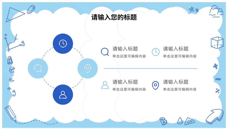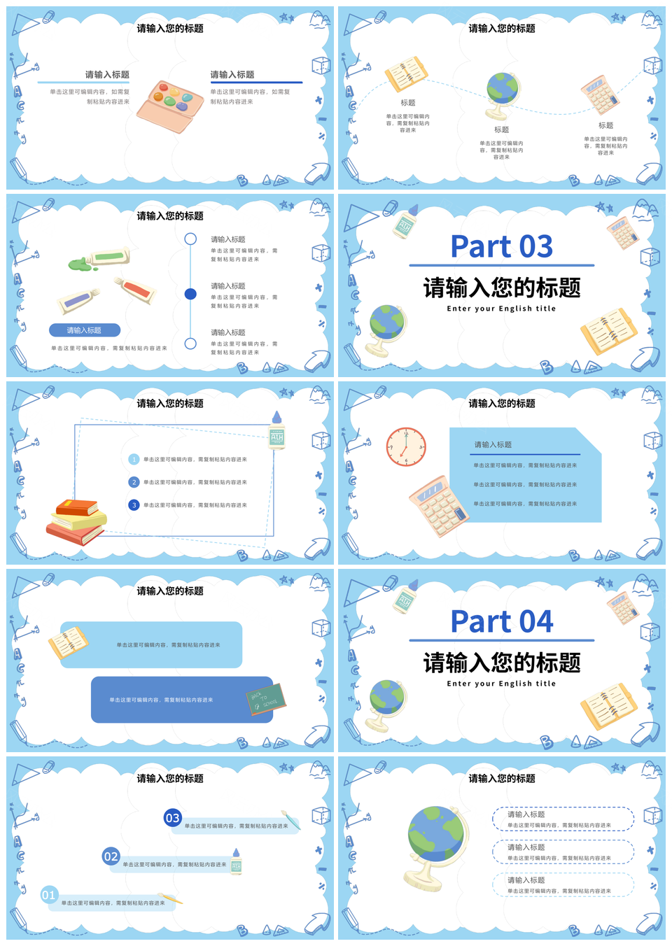 清新卡通几何插画创意手绘蓝色扁平教育PPT模板