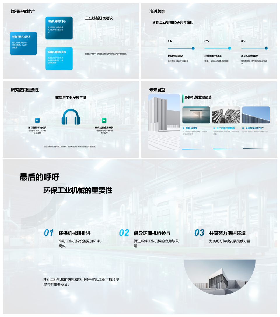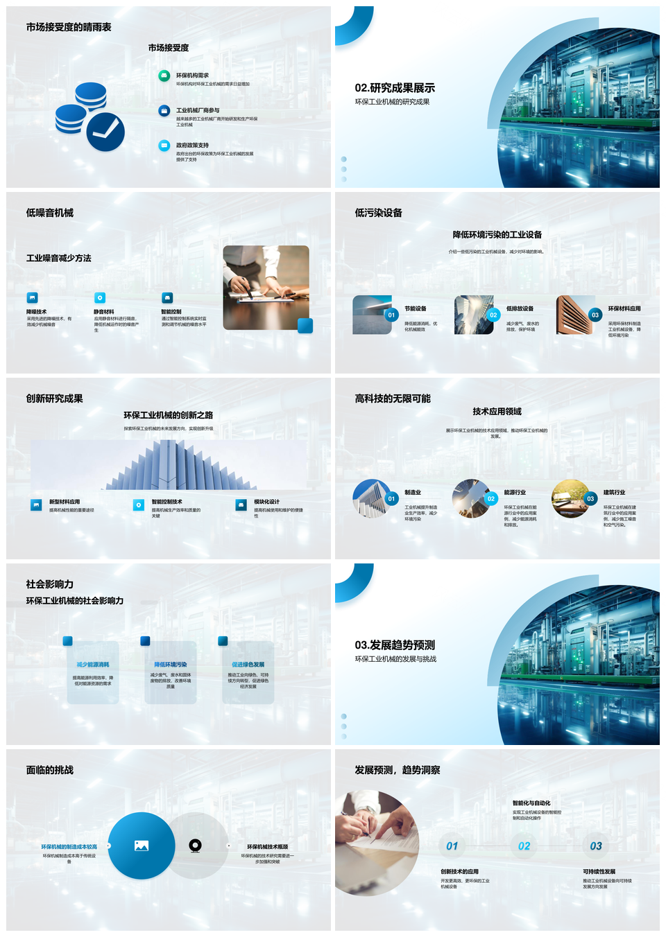 绿色环保工业机械研究应用与低噪低污染挑战成果PPT模板推荐