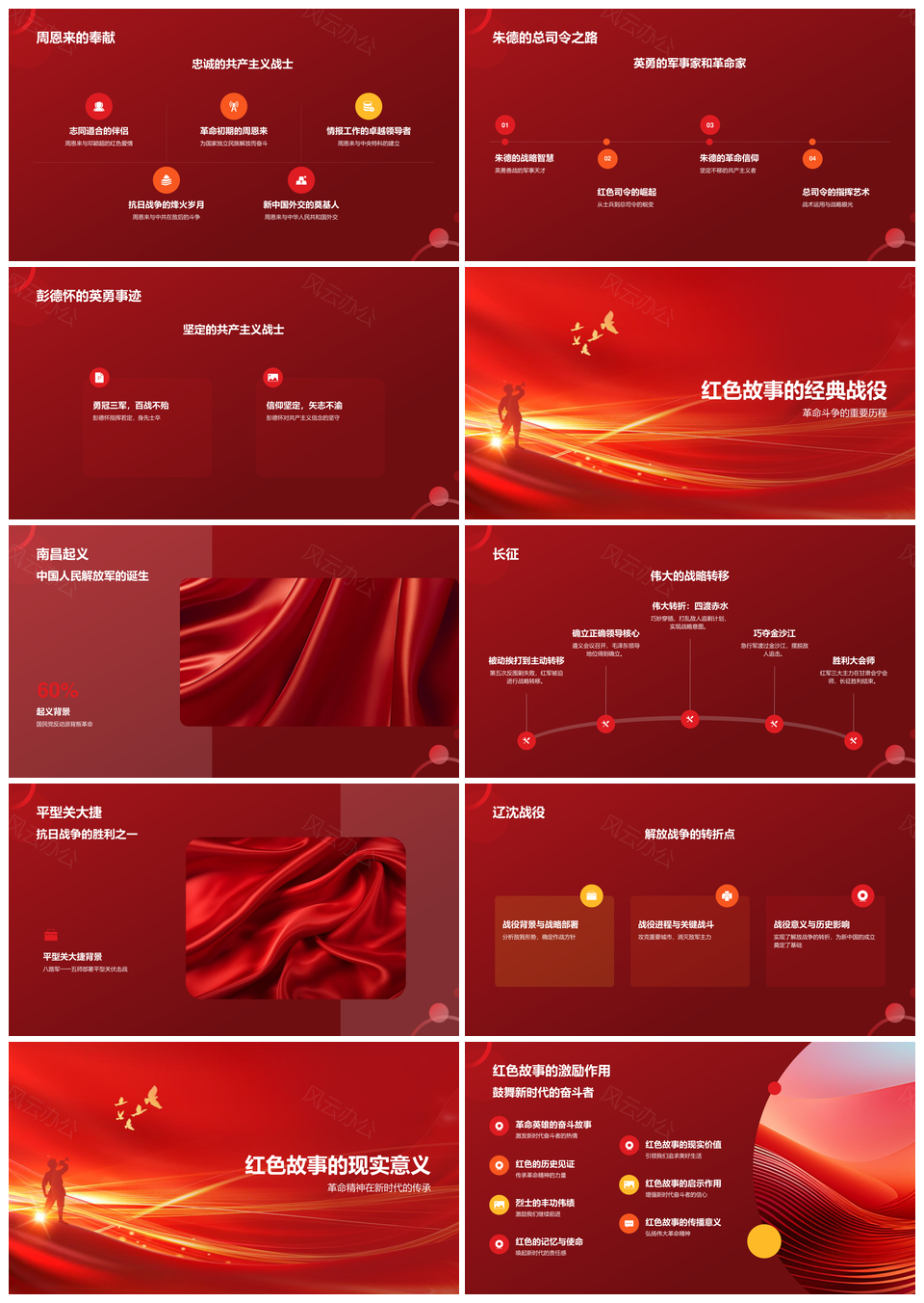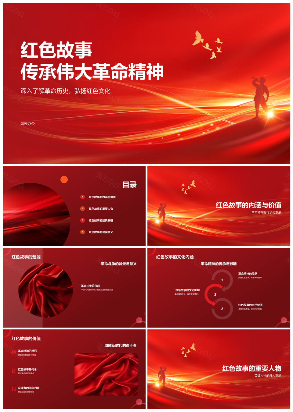风云办公提供的红色党政史话精神弘扬事迹传承PPT模板,下载格式为pptx,一共22页,作品中文字及图均可以修改和编辑,图片更改请在作品中右键图片并更换,文字修改请直接点击文字进行修改。