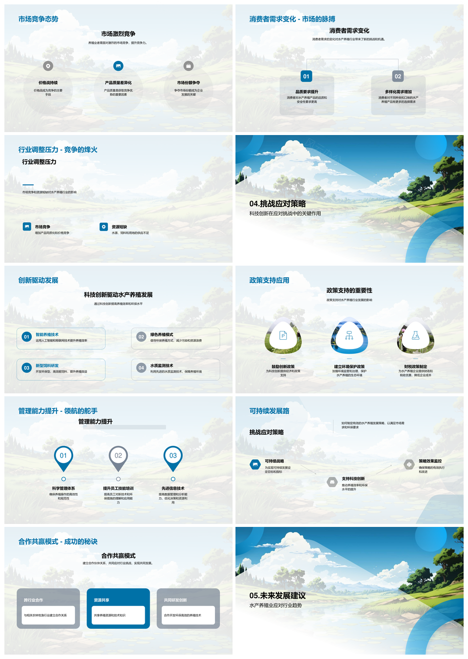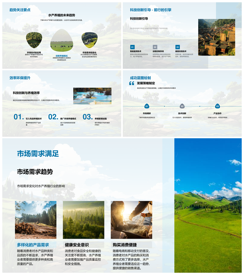 这是一张水产养殖行业规模趋势环保高效养殖运营分析PPT模板,包含水产养殖行业、规模、趋势、环保、高效、养殖、运营、分析等主题内容,也可用作水产养殖行业规模趋势、行业规模趋势环保、规模趋势环保高效、趋势环保高效养殖、环保高效养殖运营、高效养殖运营分析、水产养殖行业规模、行业规模趋势、规模趋势环保、趋势环保高效、环保高效养殖、高效养殖运营、养殖运营分析、水产养殖行业、行业规模等PPT场景使用。 风云办公提供的水产养殖行业规模趋势环保高效养殖运营分析PPT模板,下载格式为pptx,一共33页,作品中文字及图均可以修改和编辑,图片更改请在作品中右键图片并更换,文字修改请直接点击文字进行修改。