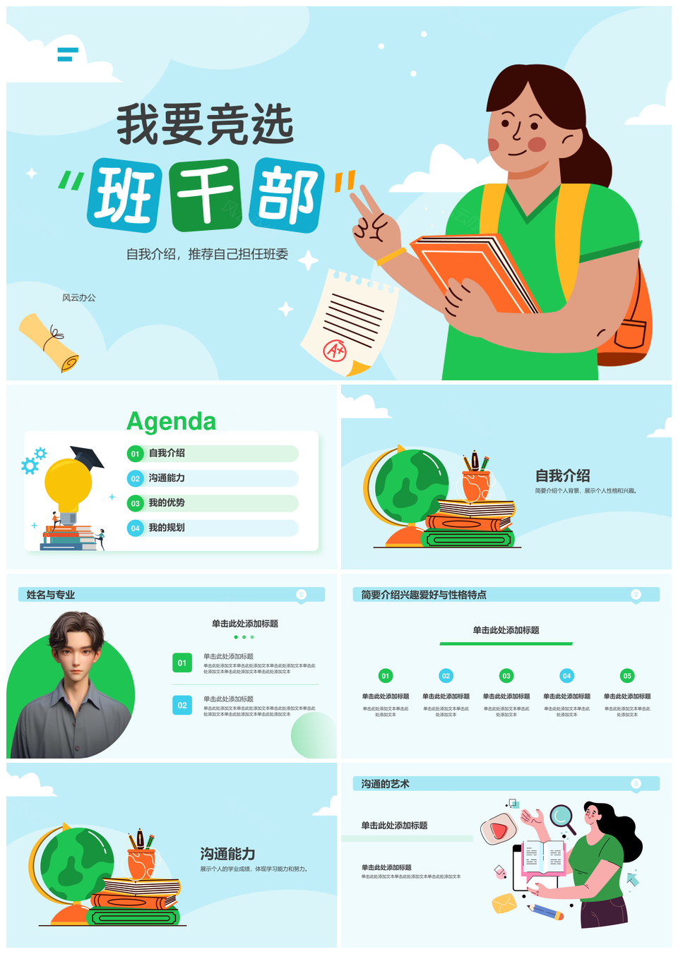 2025绿色班委竞选组织沟通团队协作素质提升PPT模板
