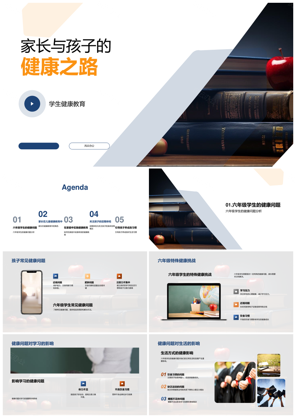 风云办公提供的家长孩子健康生活教育饮食运动体检PPT模板,下载格式为pptx,一共24页,作品中文字及图均可以修改和编辑,图片更改请在作品中右键图片并更换,文字修改请直接点击文字进行修改。