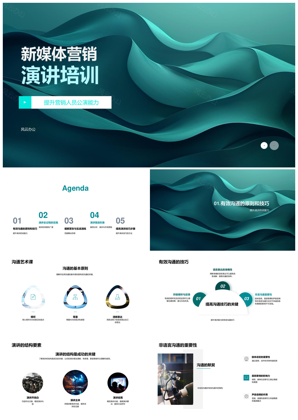 风云办公提供的新媒体营销公众演讲沟通技巧培训PPT模板,下载格式为pptx,一共28页,作品中文字及图均可以修改和编辑,图片更改请在作品中右键图片并更换,文字修改请直接点击文字进行修改。
