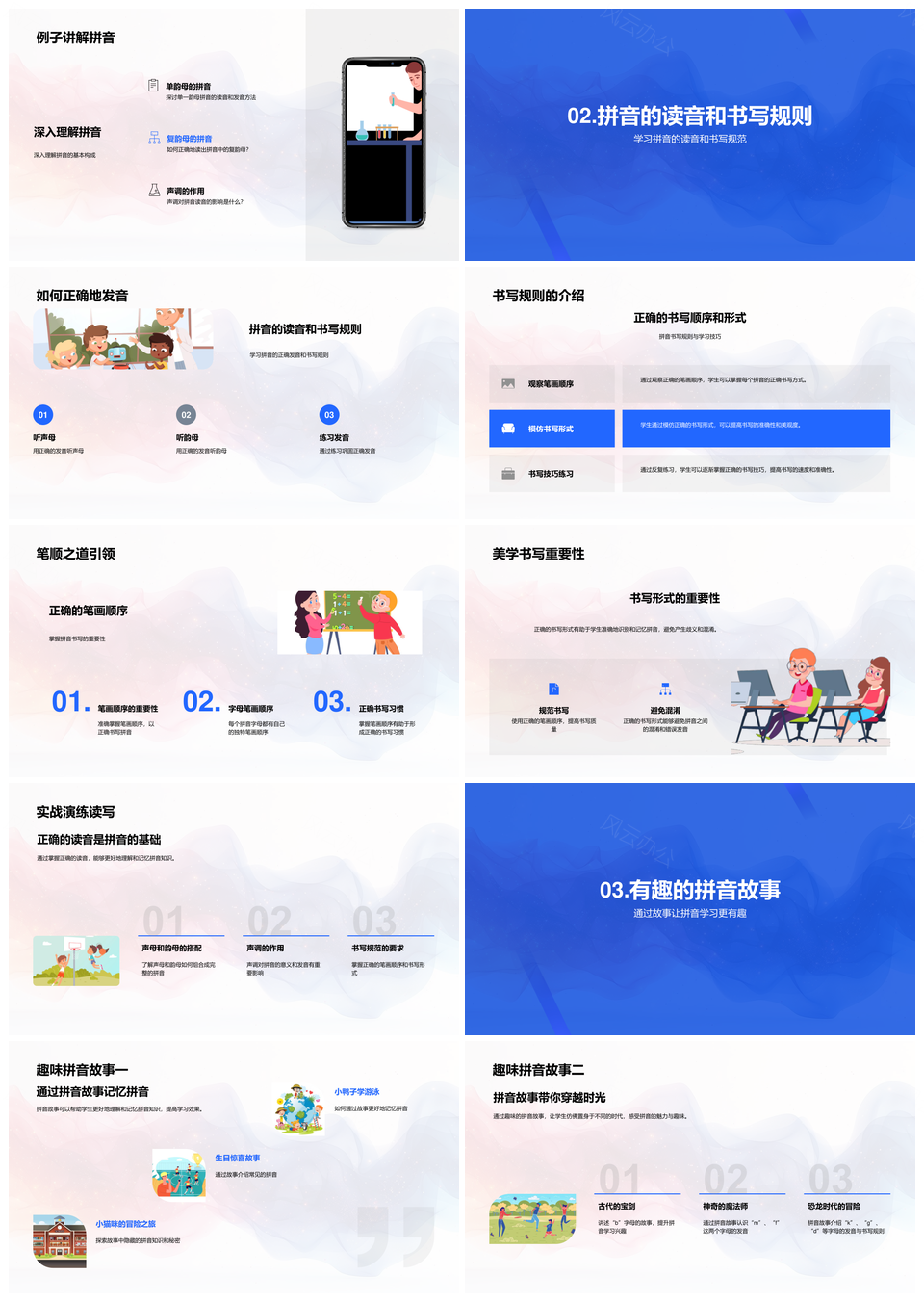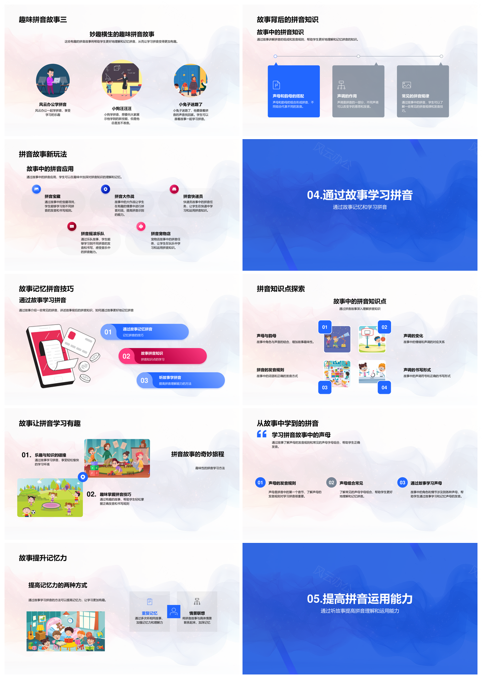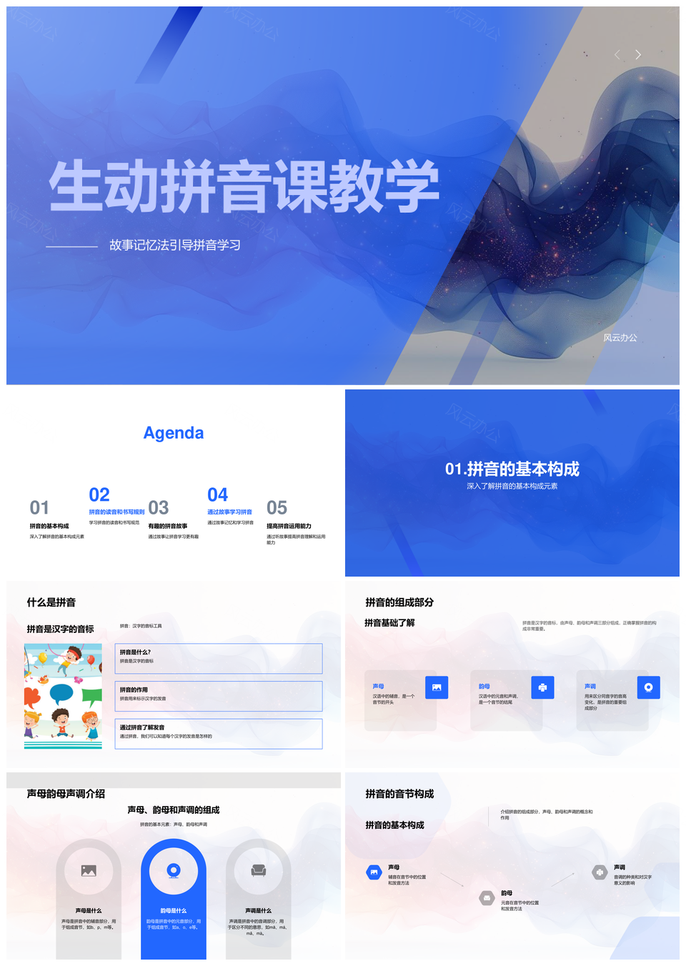 风云办公提供的生动拼音教学故事法声韵调发音书写PPT模板,下载格式为pptx,一共33页,作品中文字及图均可以修改和编辑,图片更改请在作品中右键图片并更换,文字修改请直接点击文字进行修改。