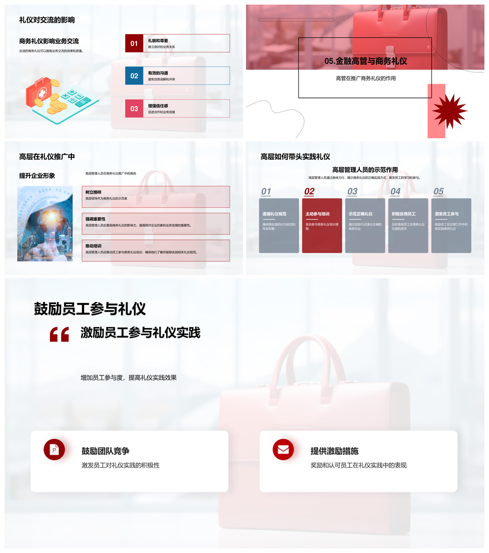 这是一张金融商务礼仪精要与企业形象PPT模板,包含金融、商务、礼仪、精要、企业、形象等主题内容,也可用作金融商务礼仪精要、商务礼仪精要企业、礼仪精要企业形象、金融商务礼仪、商务礼仪精要、礼仪精要企业、精要企业形象、金融商务、商务礼仪、礼仪精要、企业形象、商务精要、金融精要、商务企业、精要企业等PPT场景使用。 风云办公提供的金融商务礼仪精要与企业形象PPT模板,下载格式为pptx,一共23页,作品中文字及图均可以修改和编辑,图片更改请在作品中右键图片并更换,文字修改请直接点击文字进行修改。