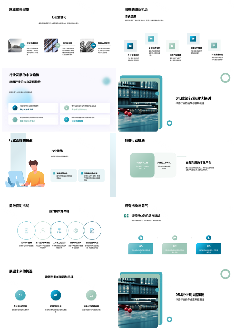 律师行业职业发展路径前景挑战机遇PPT模板推荐