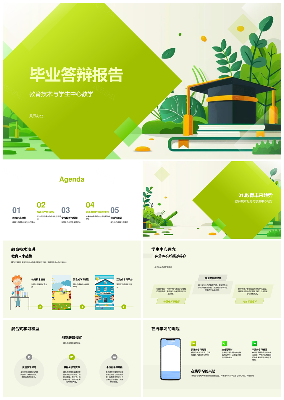 教育技术学生中心互动平台个性学习混合模型答辩PPT模板推荐