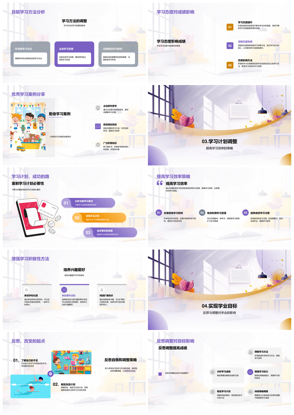 2025学期学习成效分析及方法调整提效反思学业目标PPT模板推荐