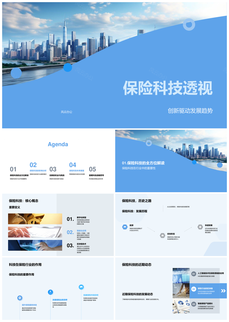 风云办公提供的保险科技发展趋势与创新服务模式PPT模板,下载格式为pptx,一共33页,作品中文字及图均可以修改和编辑,图片更改请在作品中右键图片并更换,文字修改请直接点击文字进行修改。