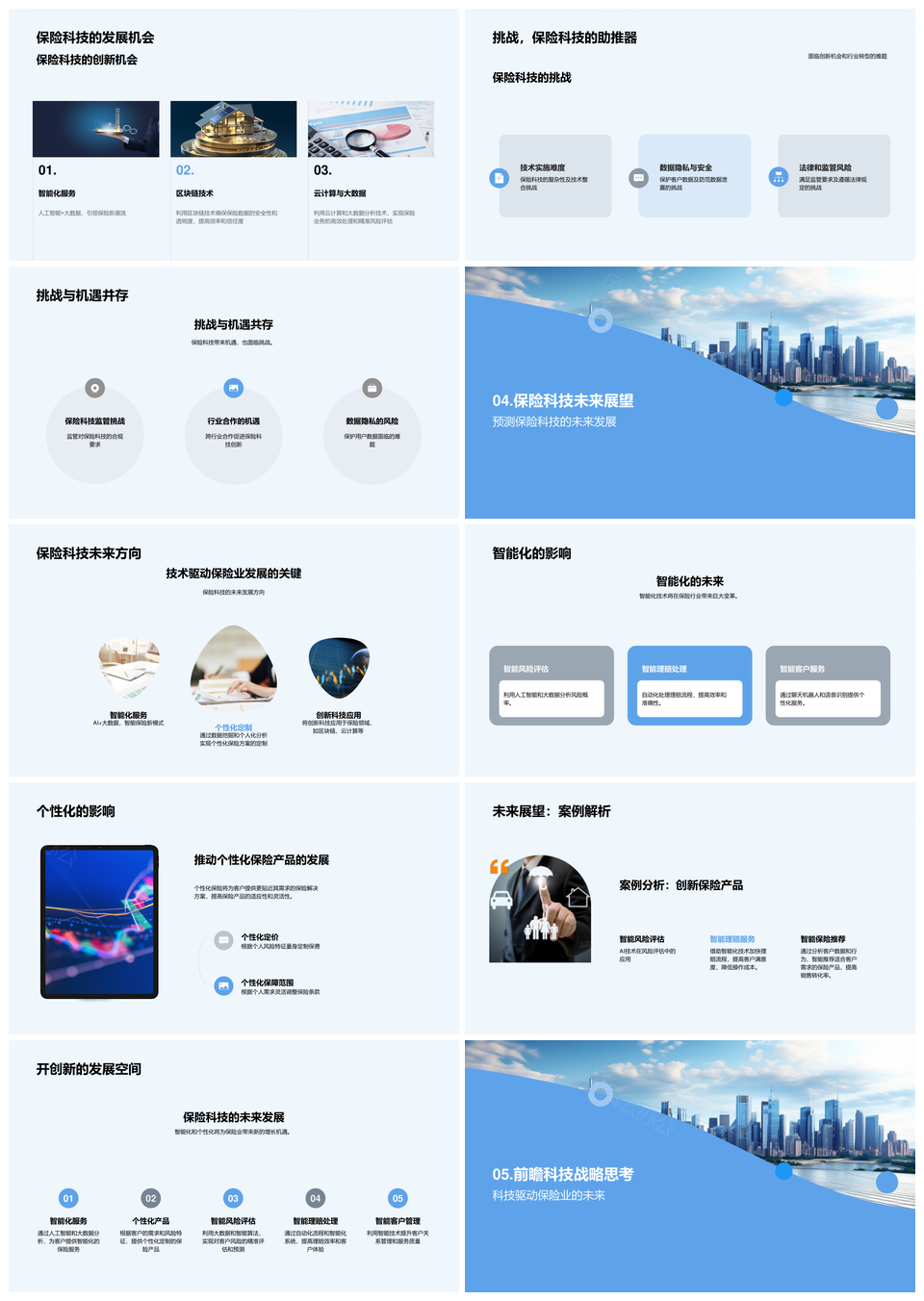 这是一张保险科技发展趋势与创新服务模式PPT模板,包含保险科技、发展趋势、创新服务、模式等主题内容,也可用作保险科技发展趋势创新服务模式、保险科技发展趋势创新、保险科技发展趋势服务模式、保险科技创新服务模式、发展趋势创新服务模式、保险科技发展趋势、保险科技创新、保险科技服务模式、发展趋势创新、发展趋势服务模式、创新服务模式等PPT场景使用。