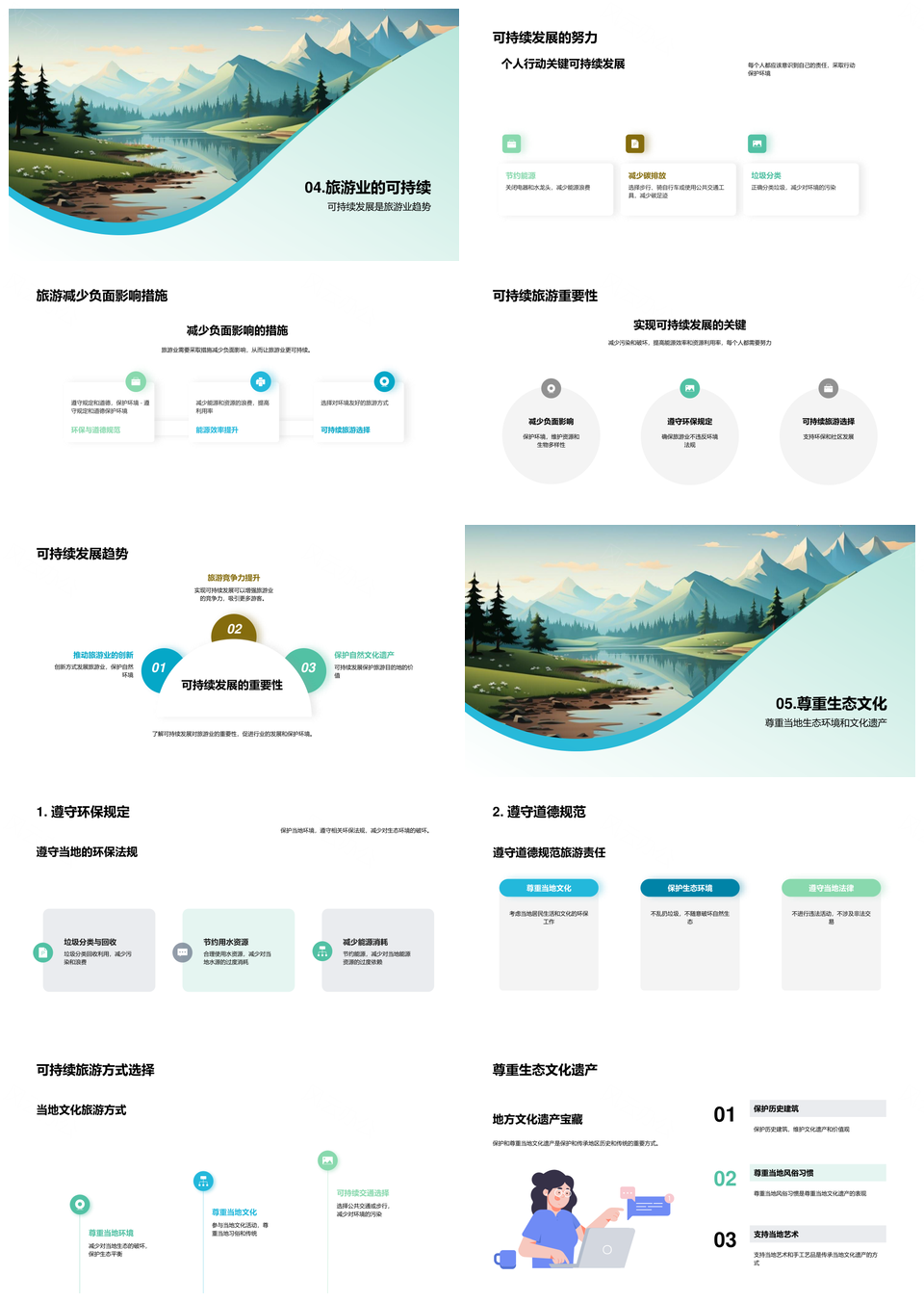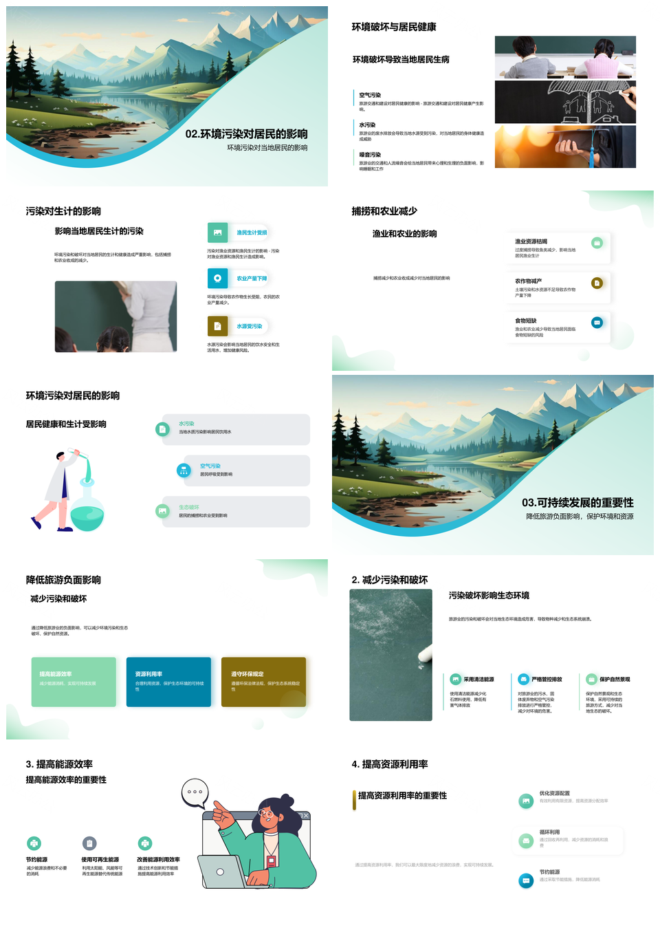 风云办公提供的旅游业生态问题与可持续发展PPT模板,下载格式为pptx,一共28页,作品中文字及图均可以修改和编辑,图片更改请在作品中右键图片并更换,文字修改请直接点击文字进行修改。