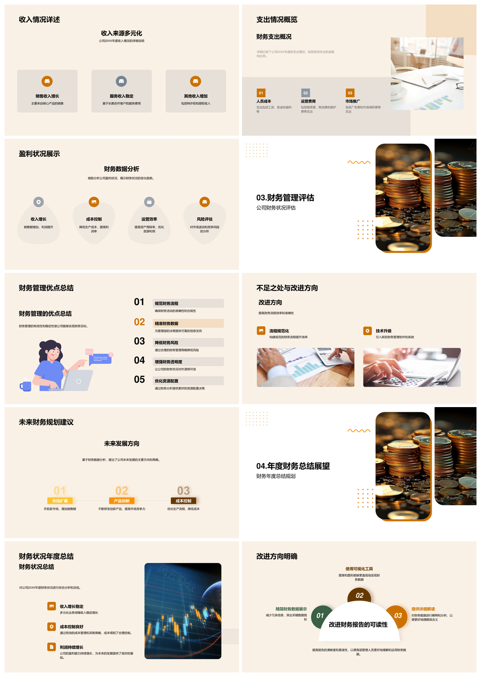 这是一张2025财务年度回顾分析收支盈利未来展望PPT模板,包含2025财务年度、回顾、分析、收支、盈利、未来、展望等主题内容,也可用作2025财务年度回顾分析、财务年度回顾分析收支、年度回顾分析收支盈利、回顾分析收支盈利未来、分析收支盈利未来展望、收支盈利未来展望、2025财务年度回顾、财务年度回顾分析、年度回顾分析收支、回顾分析收支盈利、分析收支盈利未来、收支盈利未来、年度收支盈利未来、盈利未来展望、未来展望等PPT场景使用。 风云办公提供的2025财务年度回顾分析收支盈利未来展望PPT模板,下载格式为pptx,一共23页,作品中文字及图均可以修改和编辑,图片更改请在作品中右键图片并更换,文字修改请直接点击文字进行修改。