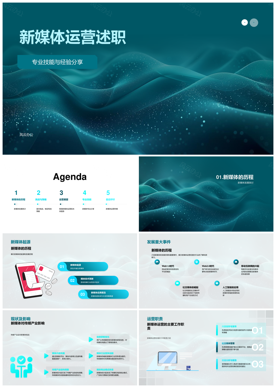 新媒体运营技能策略与数据AI经验分享PPT模板推荐