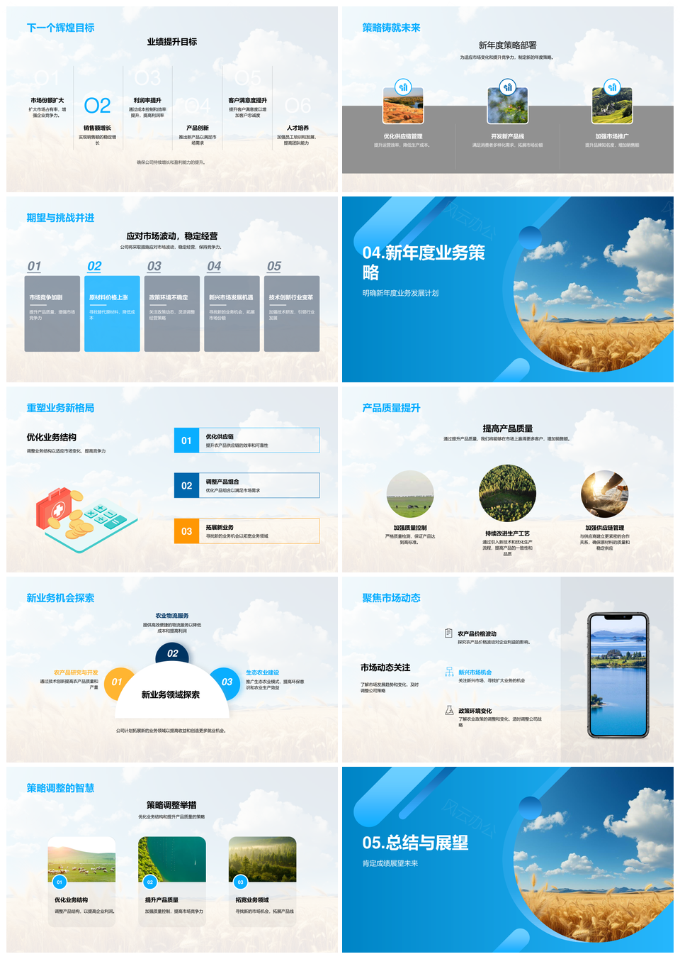 风云办公提供的2025农业年度财务业务及价格展望PPT模板,下载格式为pptx,一共33页,作品中文字及图均可以修改和编辑,图片更改请在作品中右键图片并更换,文字修改请直接点击文字进行修改。