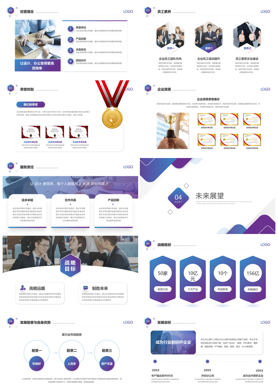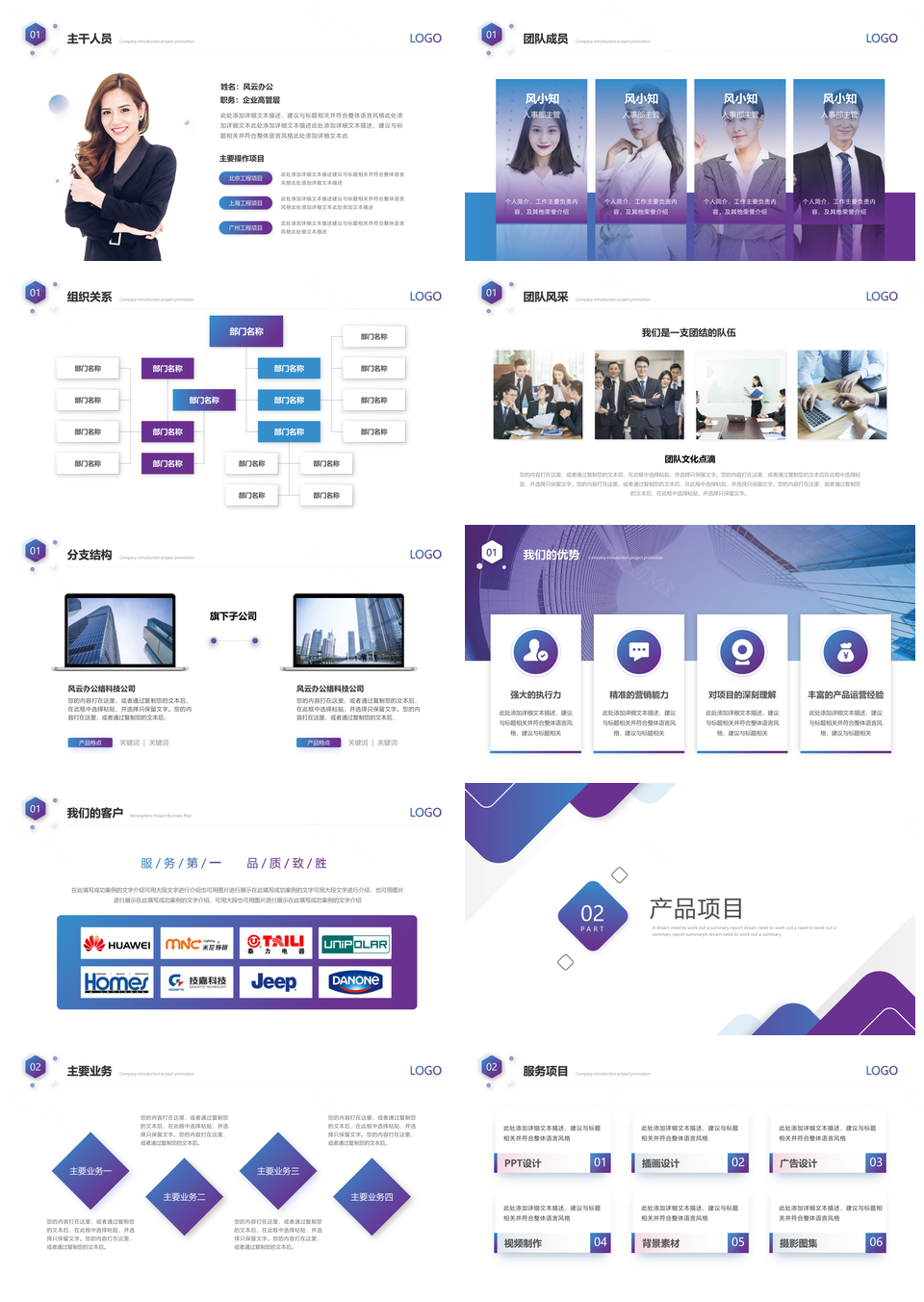 2025紫色渐变大气简约科技风格企业商务介绍汇报数据分析行业报告PPT模板
