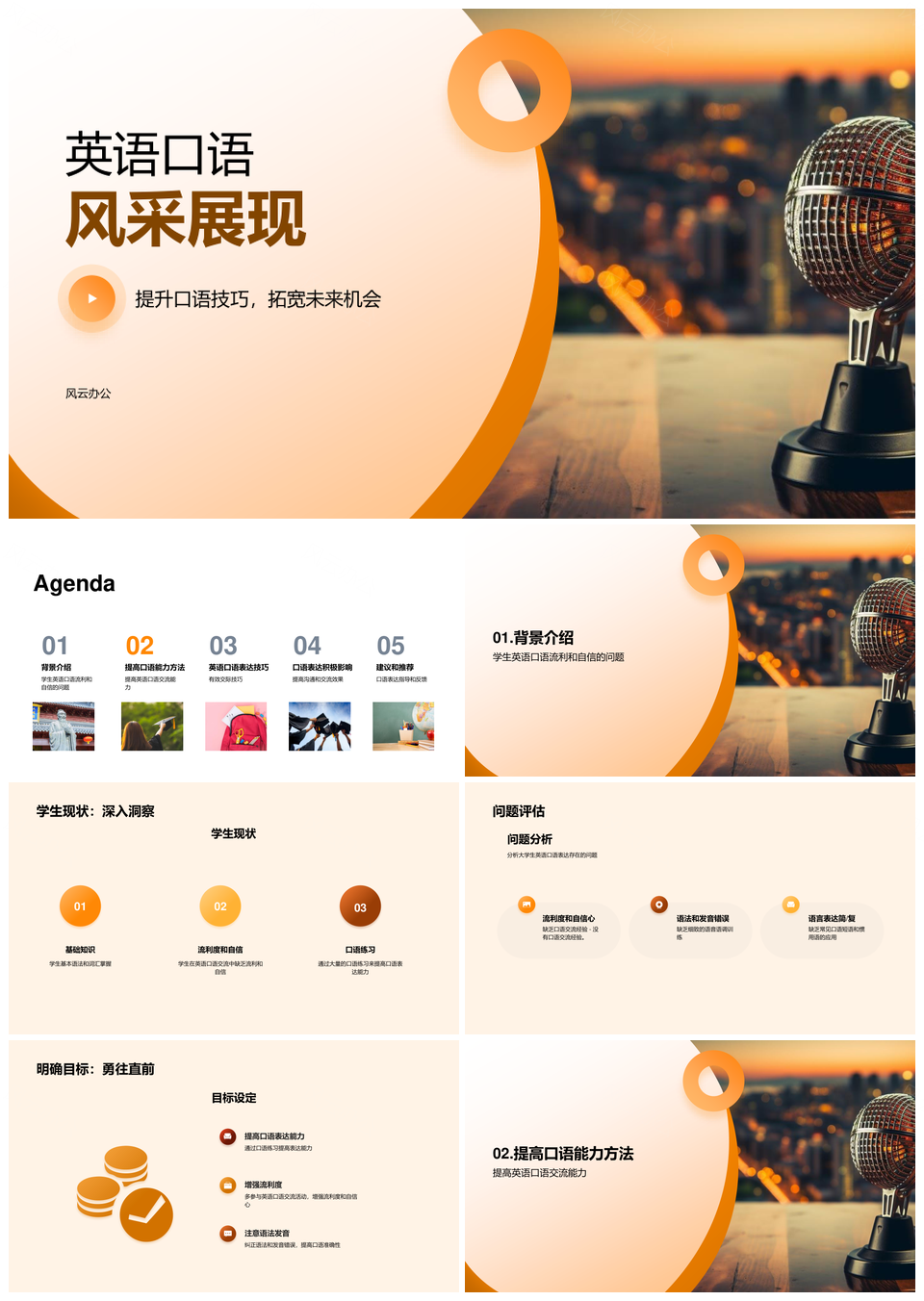 风云办公提供的本科生英语口语提升培训教学课件,下载格式为pptx,一共27页,作品中文字及图均可以修改和编辑,图片更改请在作品中右键图片并更换,文字修改请直接点击文字进行修改。